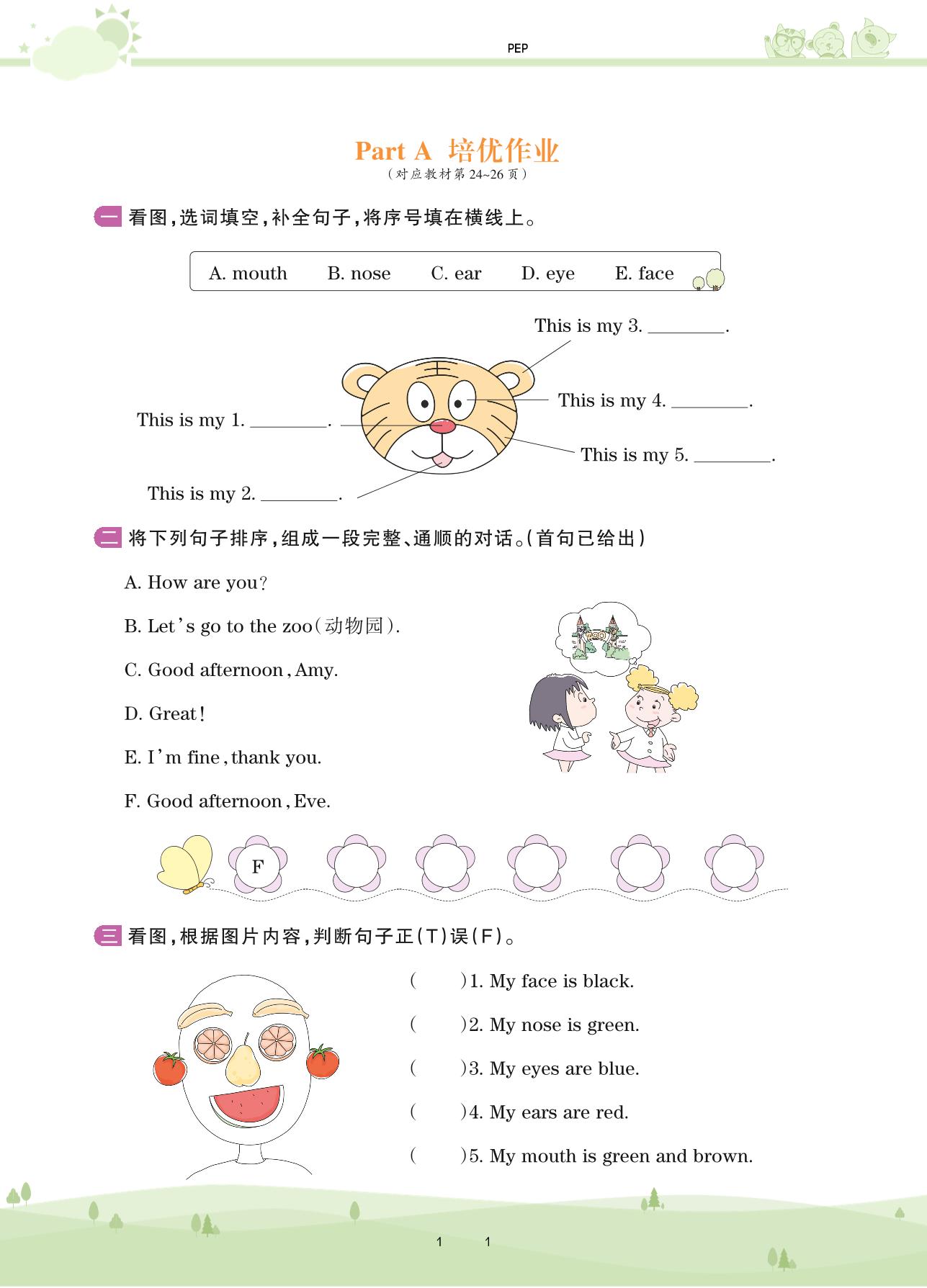 2020上册三年级英语PEP版 Unit 3—Part A 培优作业