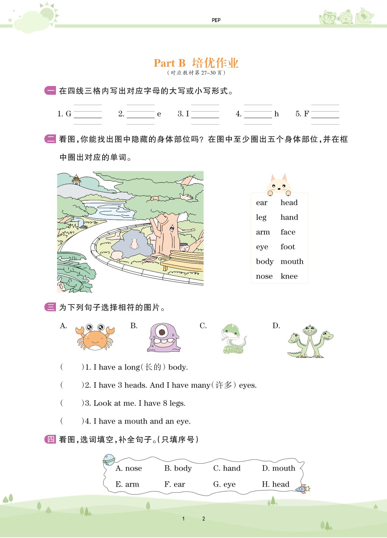 2020上册三年级英语PEP版 Unit 3—Part B 培优作业