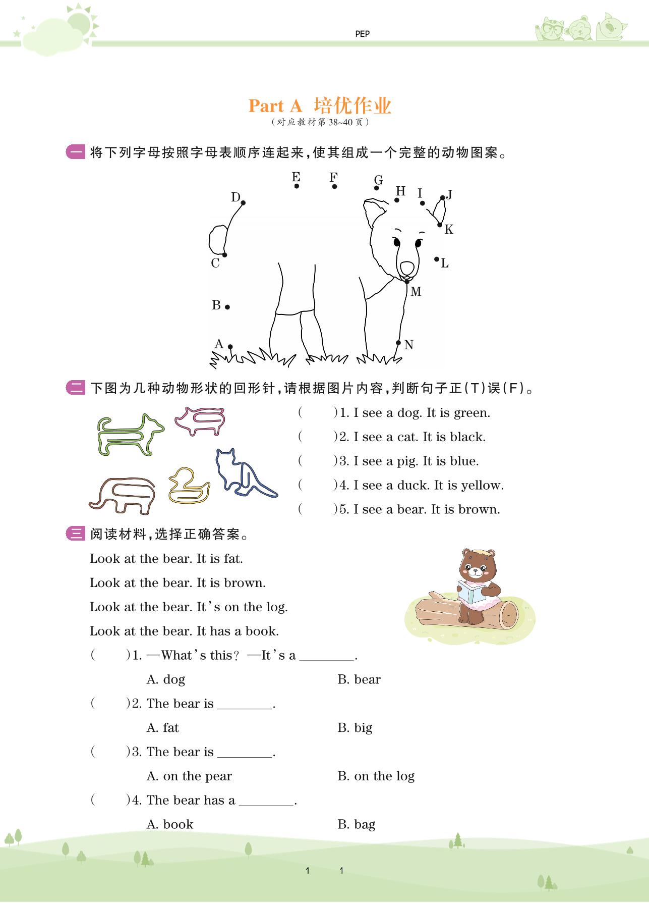 2020上册三年级英语PEP版 Unit 4—Part A 培优作业