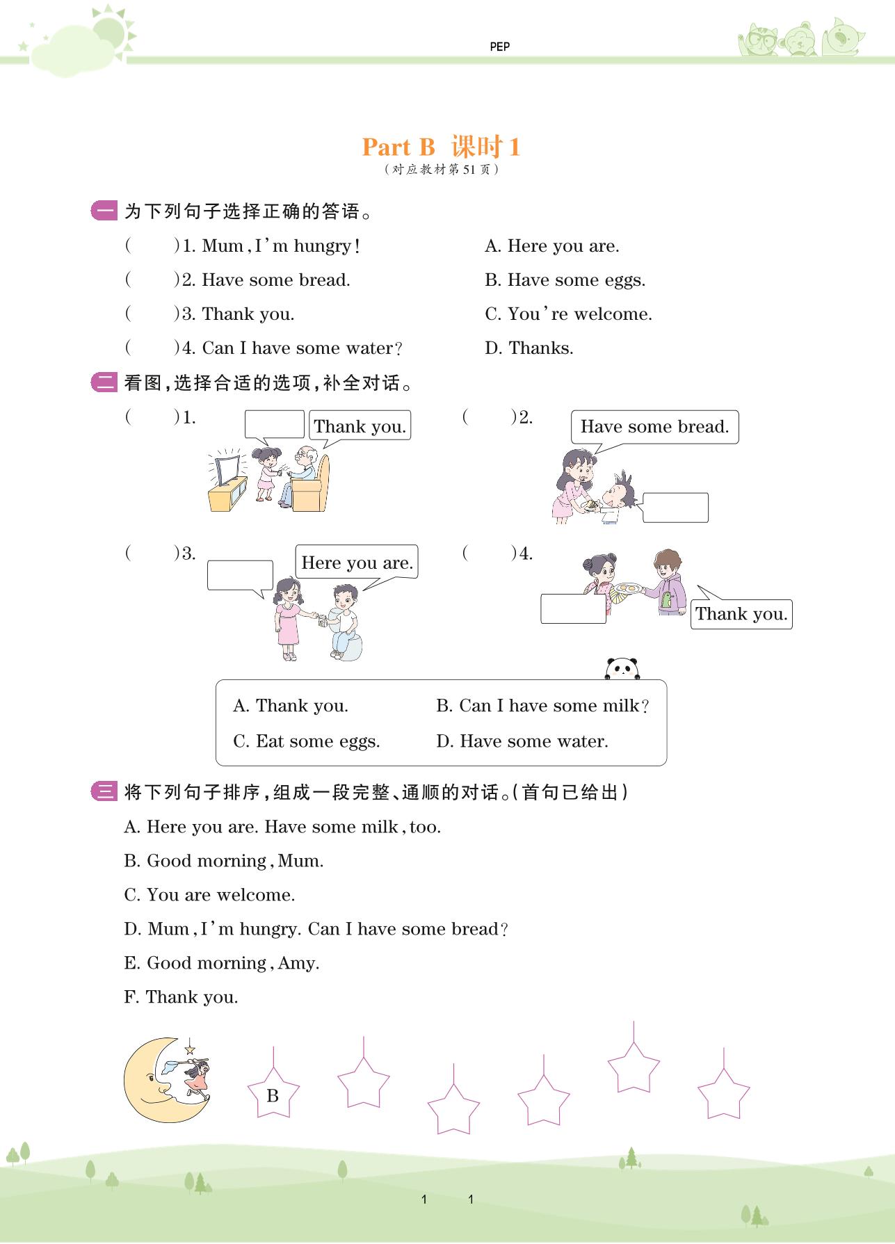 2020上册三年级英语PEP版 Unit 5—Part B 课时1