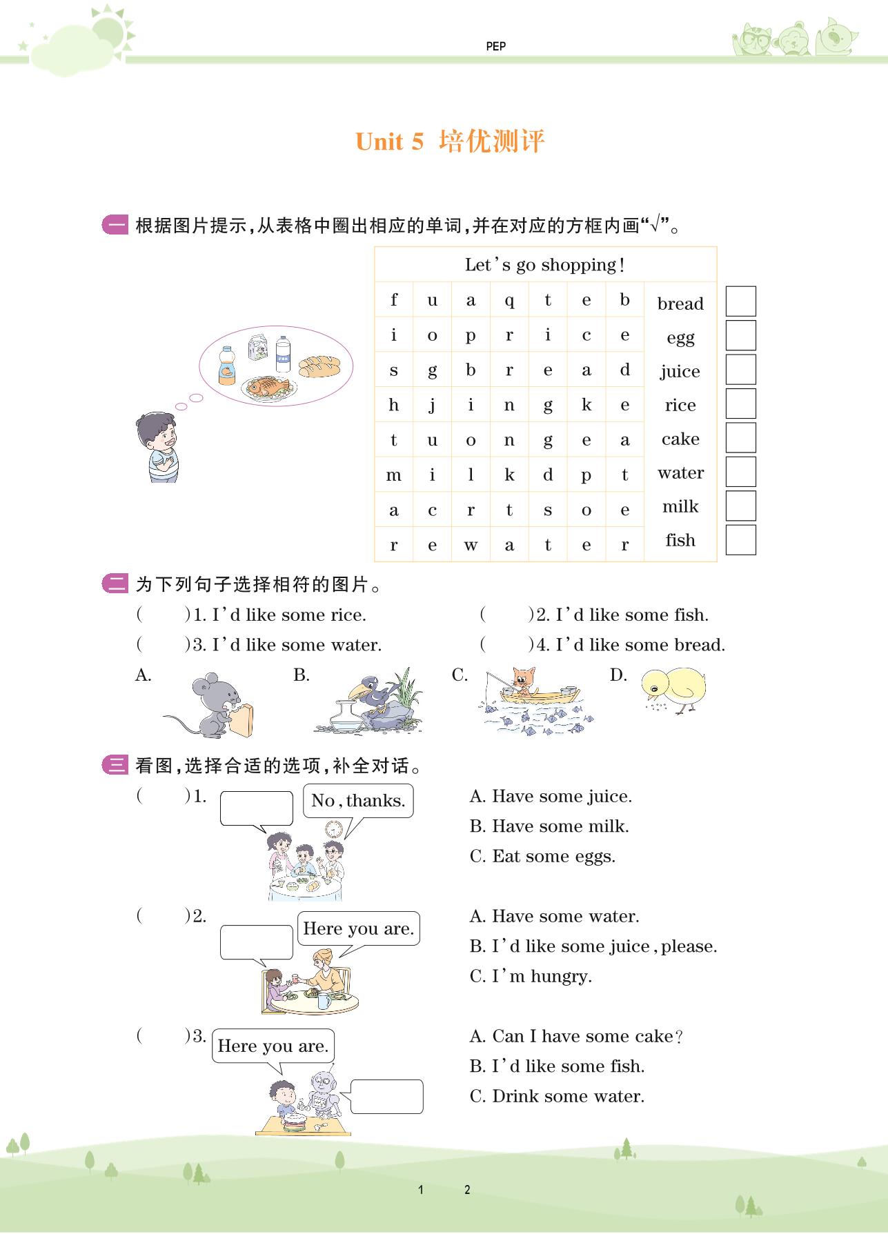 三年级英语人教PEP版(三起始)上册单元卷