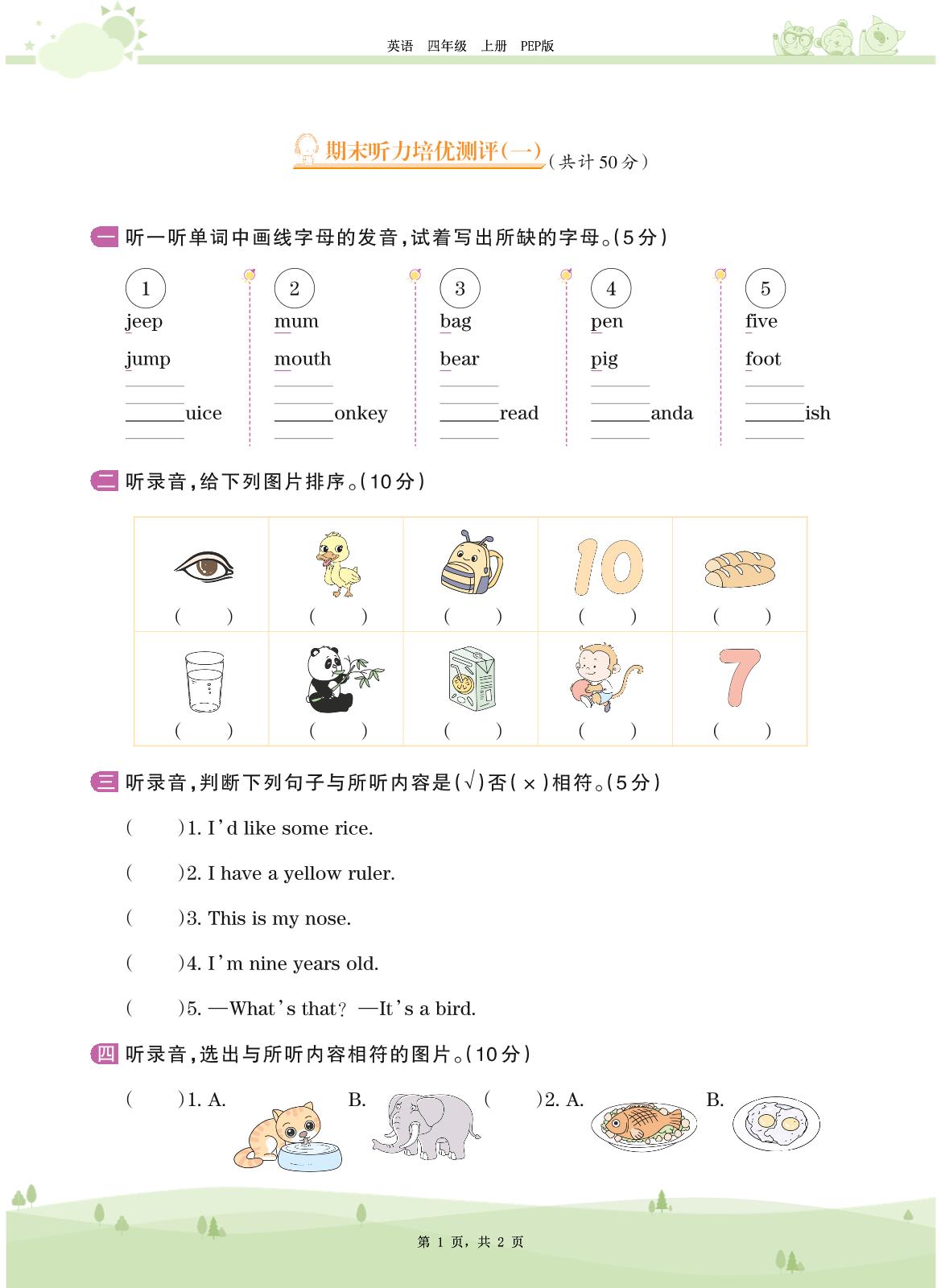 2020上册三年级英语PEP版 期末听力培优测评(一)