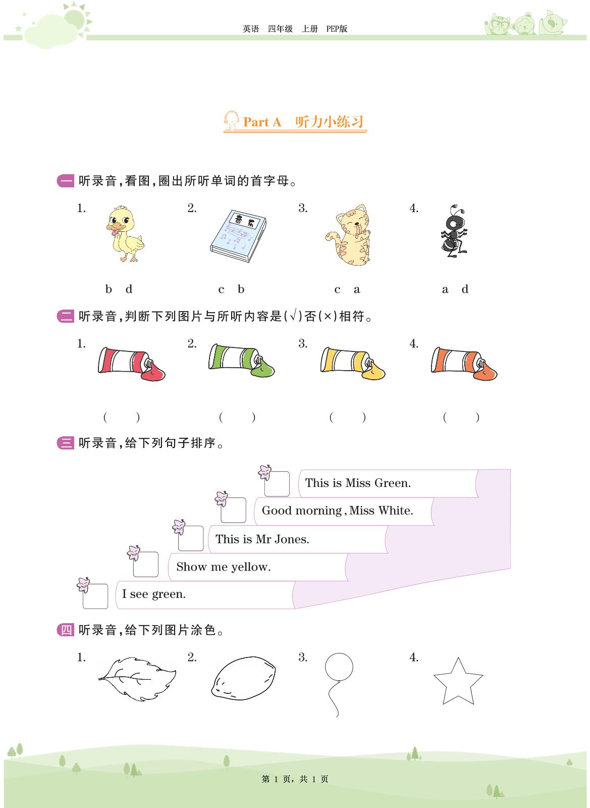 2020上册三年级英语PEP版 Unit 2——Part A 听力小练习