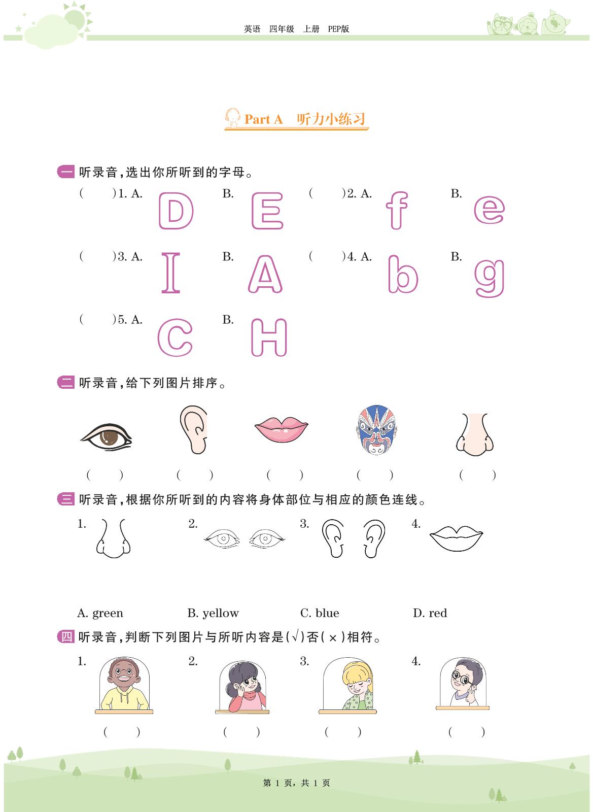 2020上册三年级英语PEP版 Unit 3——Part A 听力小练习
