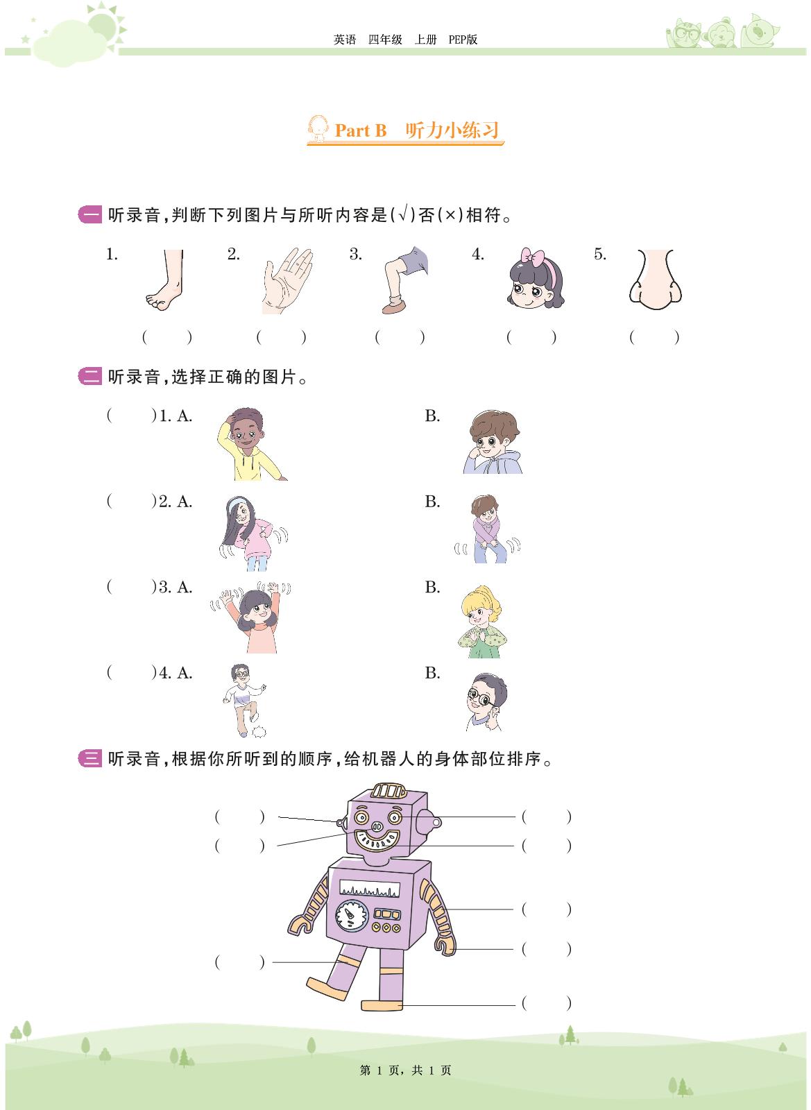 2020上册三年级英语PEP版 Unit 3——Part B 听力小练习