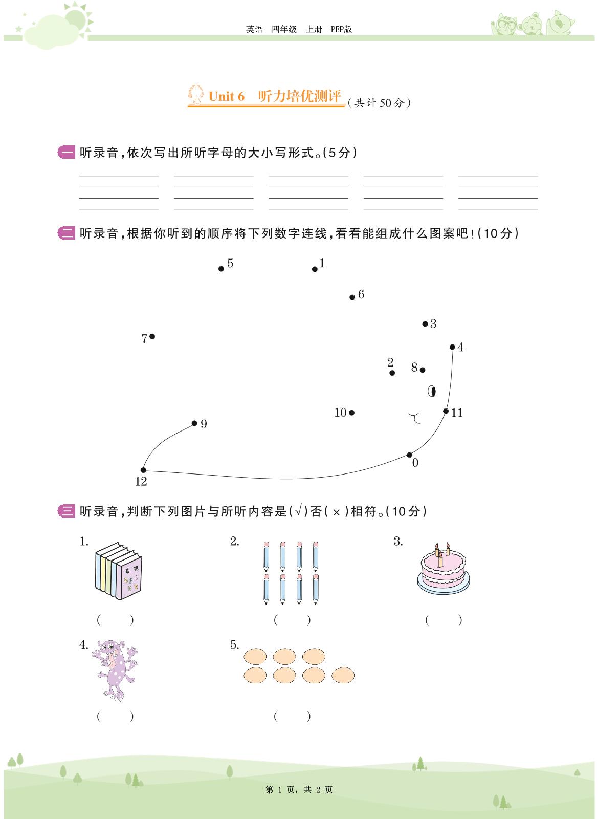 2020上册三年级英语PEP版 Unit 6 听力培优测评