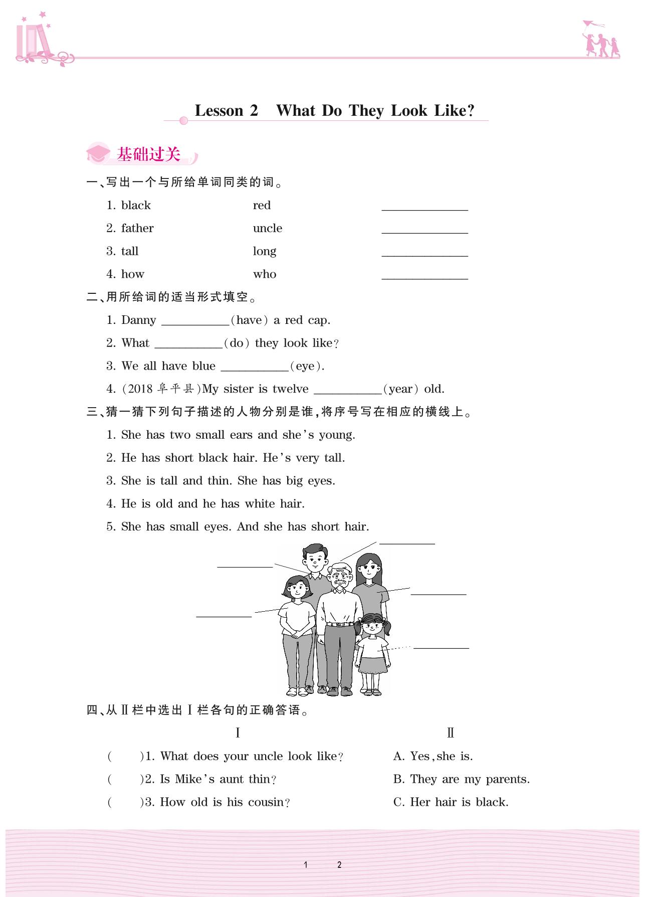 2020上册五年级英语冀教版 Unit 1—Lesson 2 What Do They Look Like?