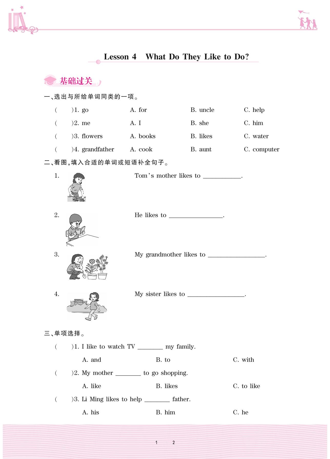 2020上册五年级英语冀教版 Unit 1—Lesson 4 What Do They Like to Do?