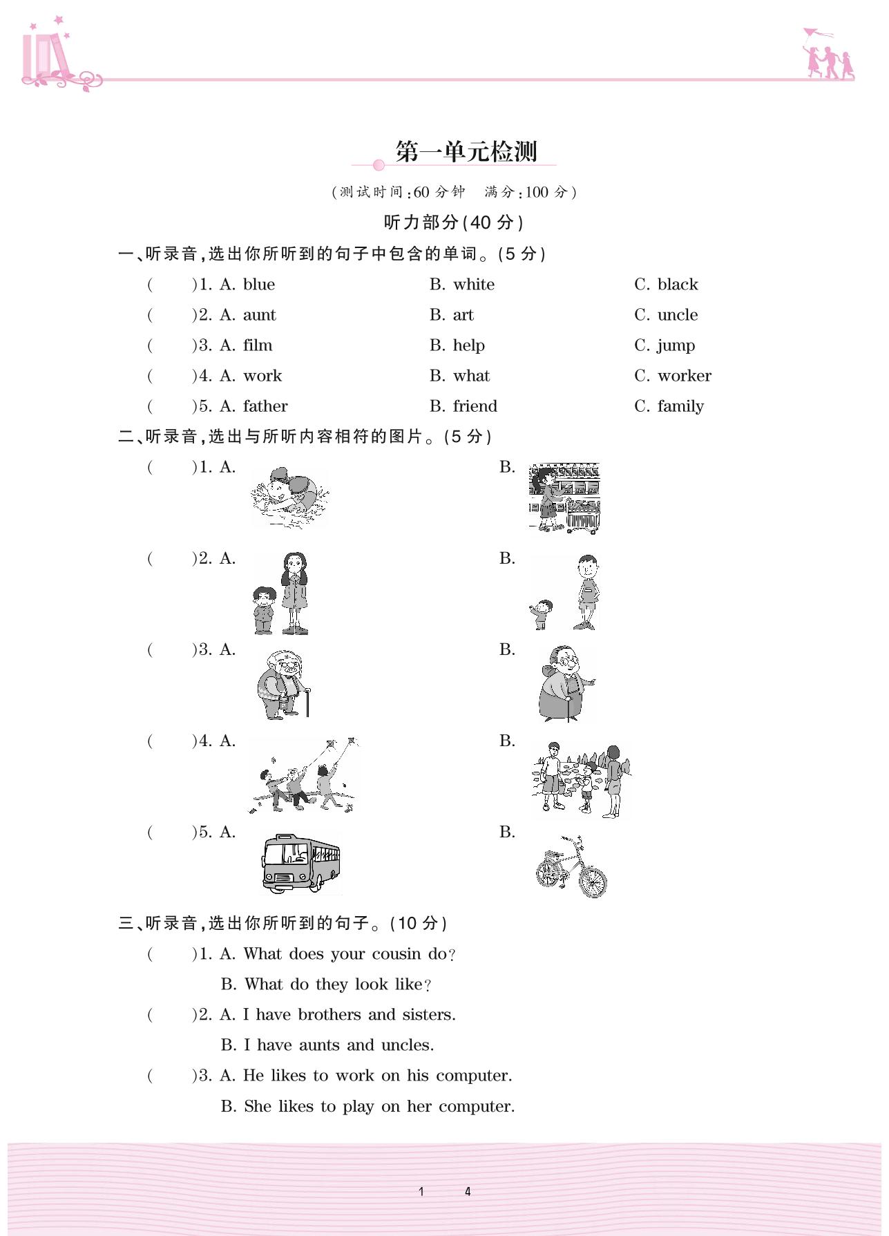 五年级英语冀教版上册单元卷