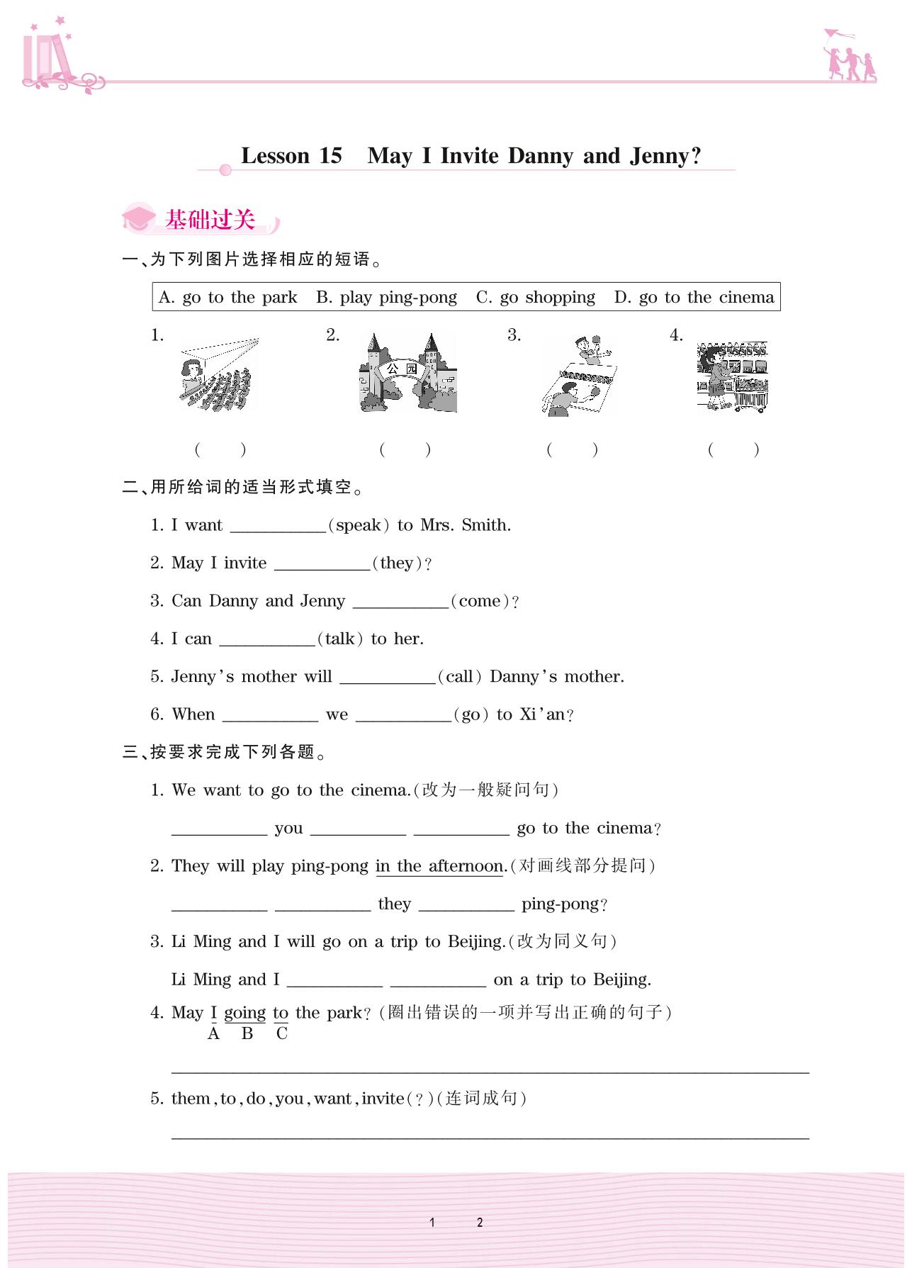 2020上册五年级英语冀教版 Unit 3—Lesson 15 May I Invite Danny and Jenny?