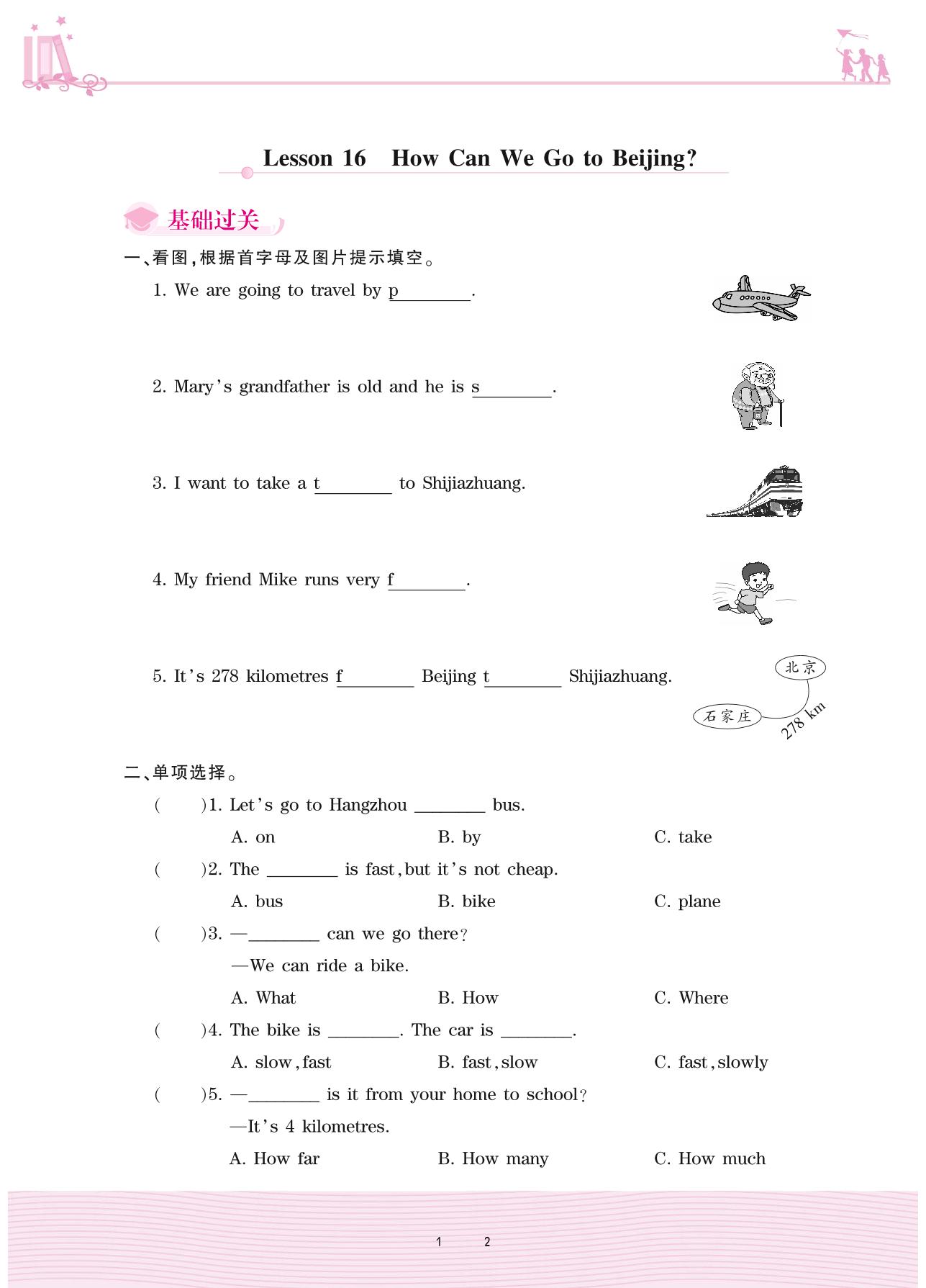 2020上册五年级英语冀教版 Unit 3—Lesson 16 How Can We Go to Beijing?