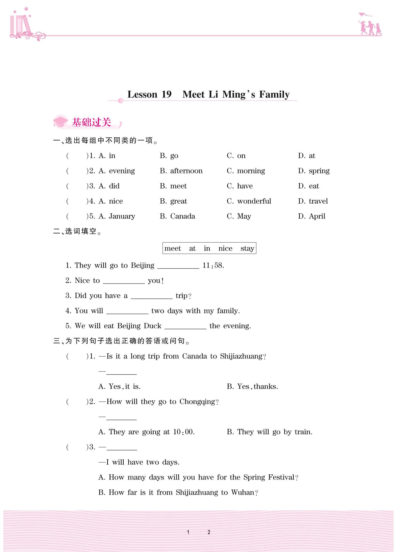 2020上册五年级英语冀教版 Unit 4—Lesson 19 Meet Li Ming’s Family