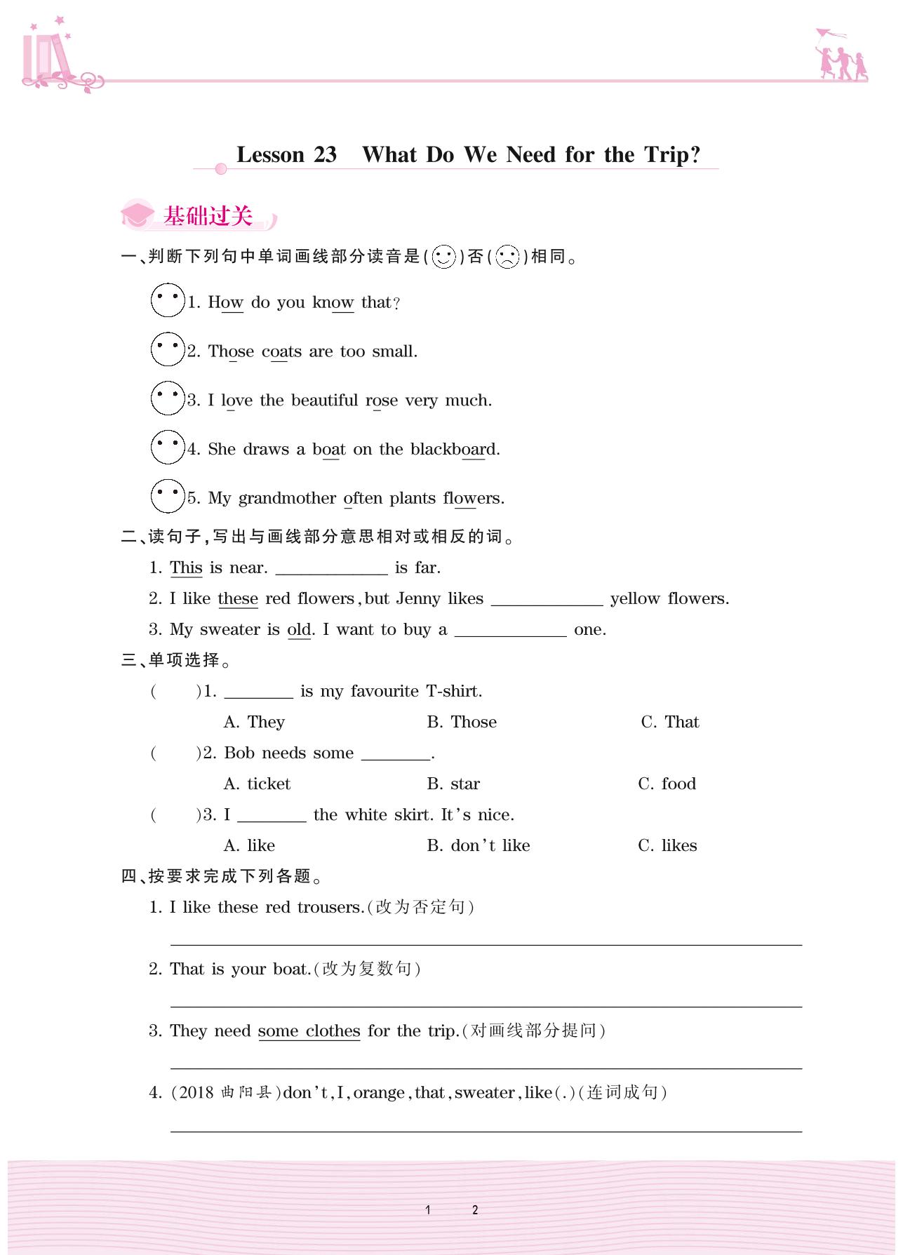 2020上册五年级英语冀教版 Unit 4—Lesson 23 What Do We Need for the Trip?