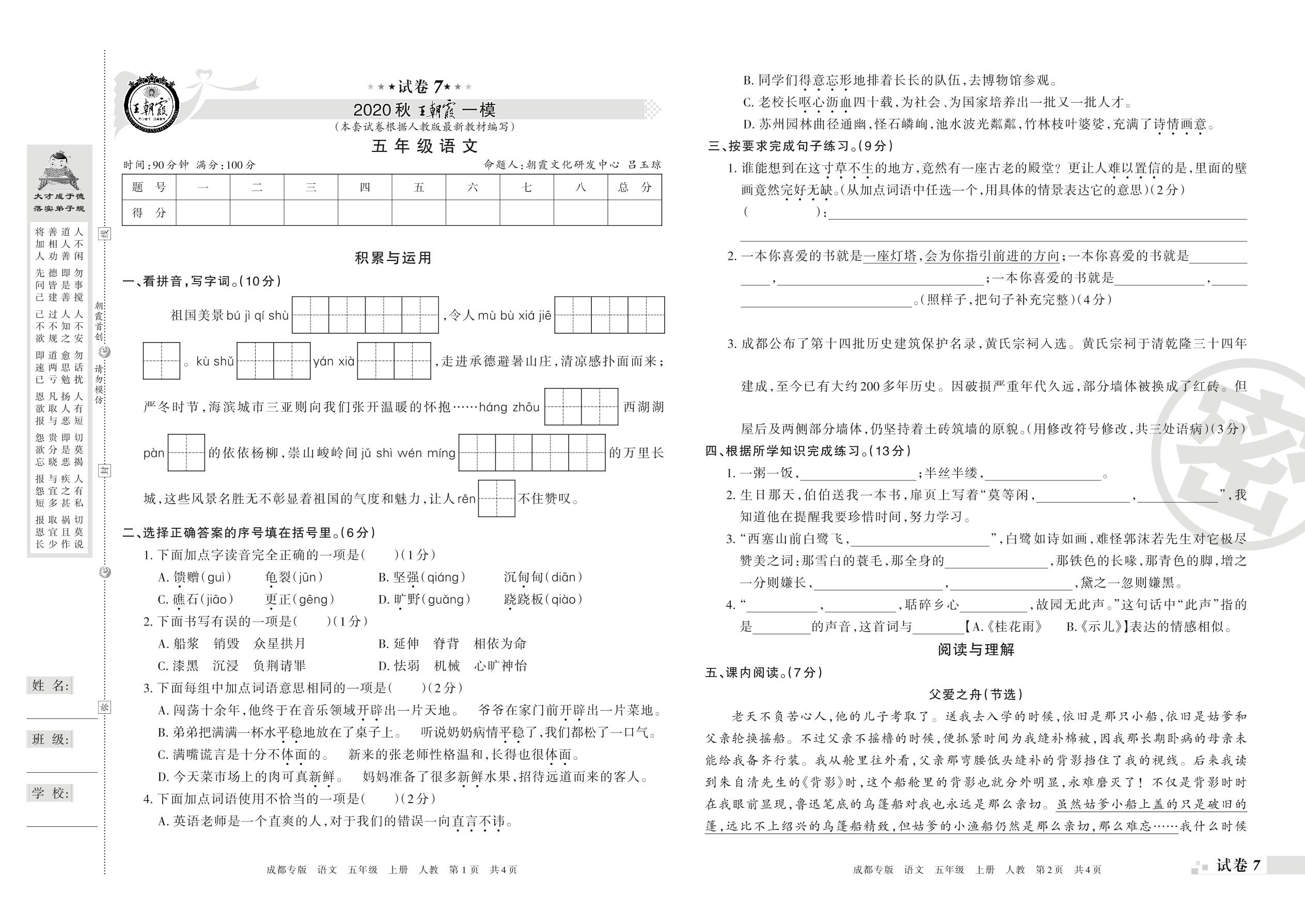 王朝霞期末模拟卷五年级上册语文(人教版)_R210801185740【7】