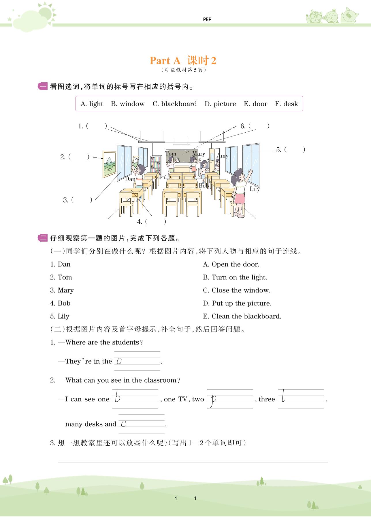2020上册四年级英语PEP版 Unit 1—Part A 课时2
