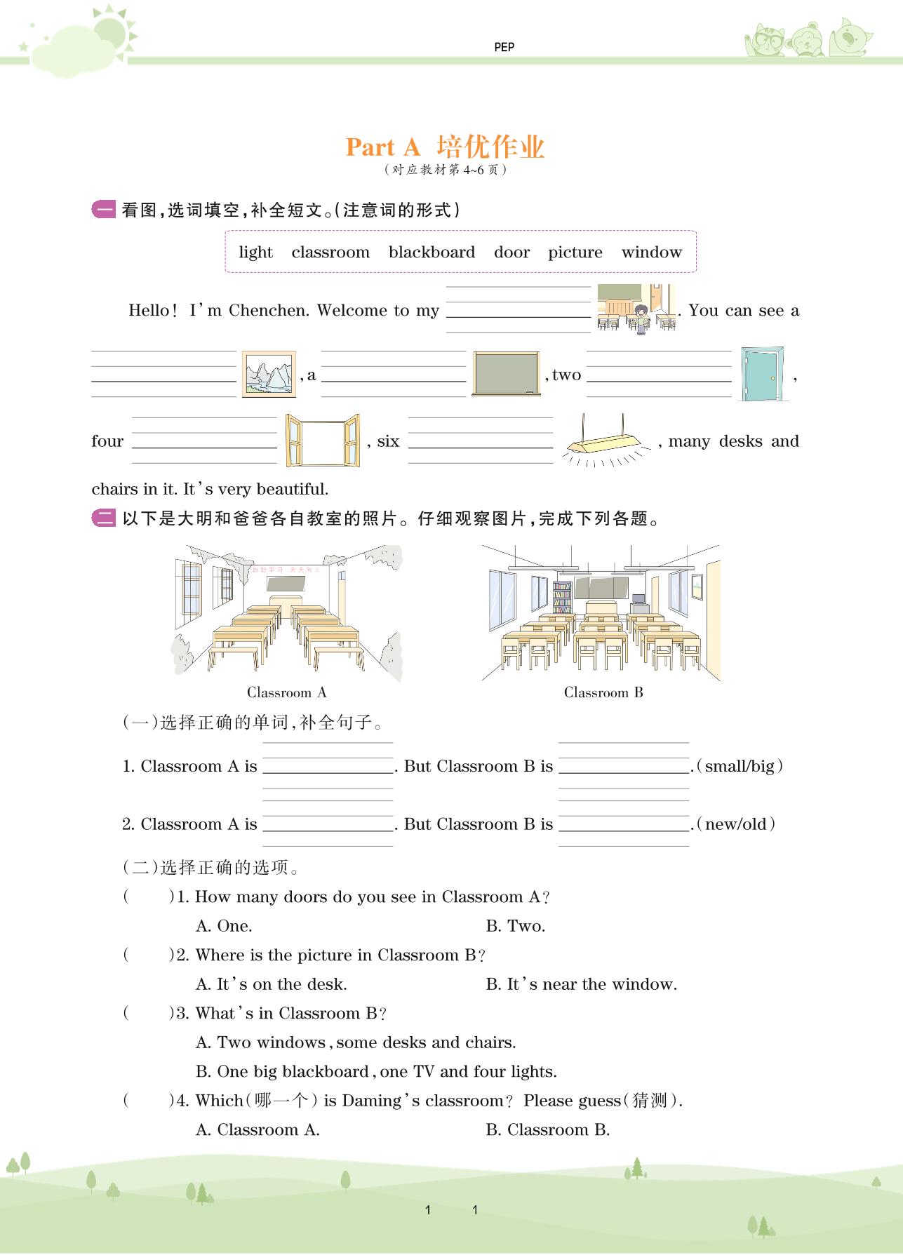 2020上册四年级英语PEP版 Unit 1—Part A 培优作业