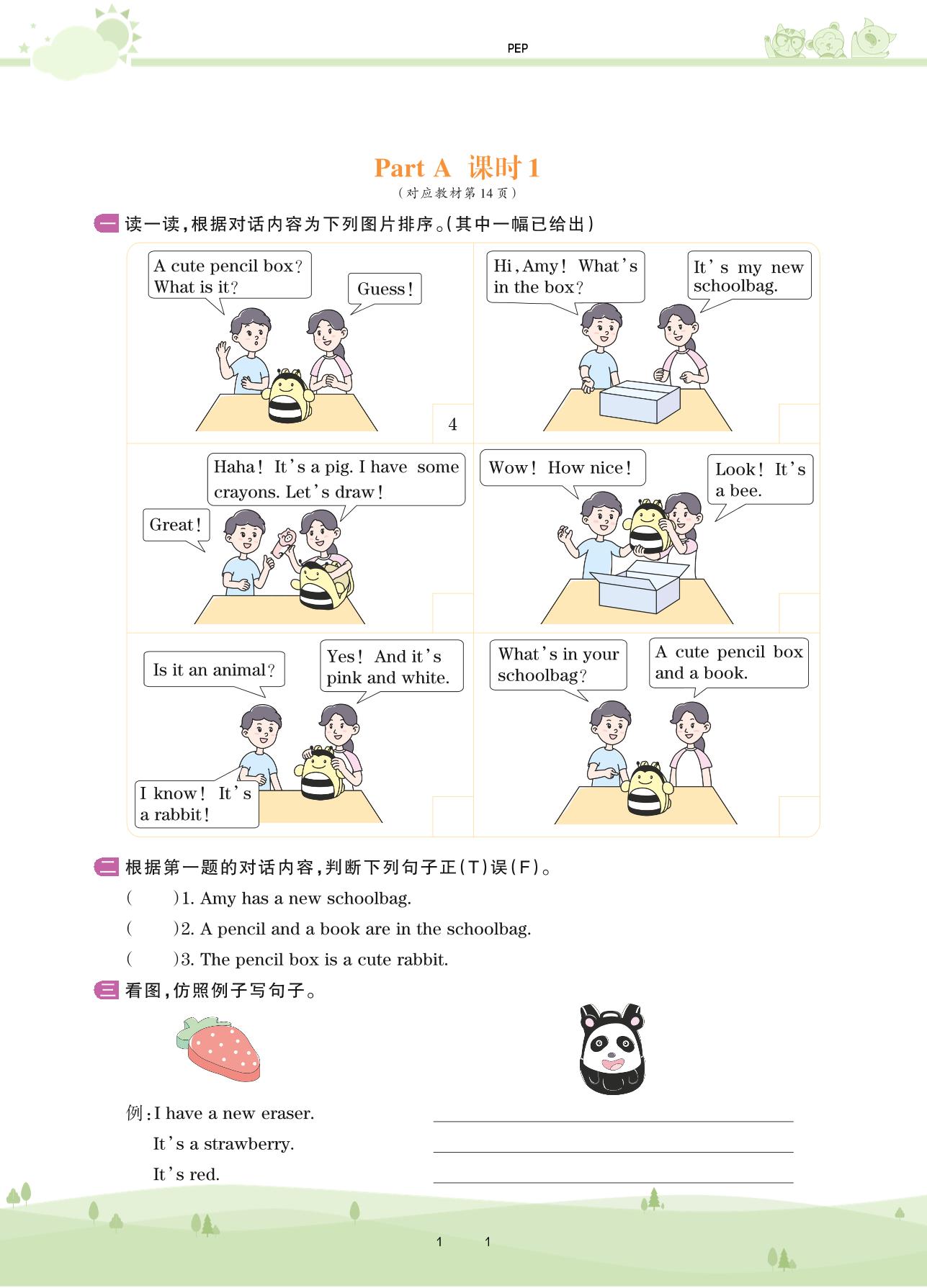 2020上册四年级英语PEP版 Unit 2—Part A 课时1