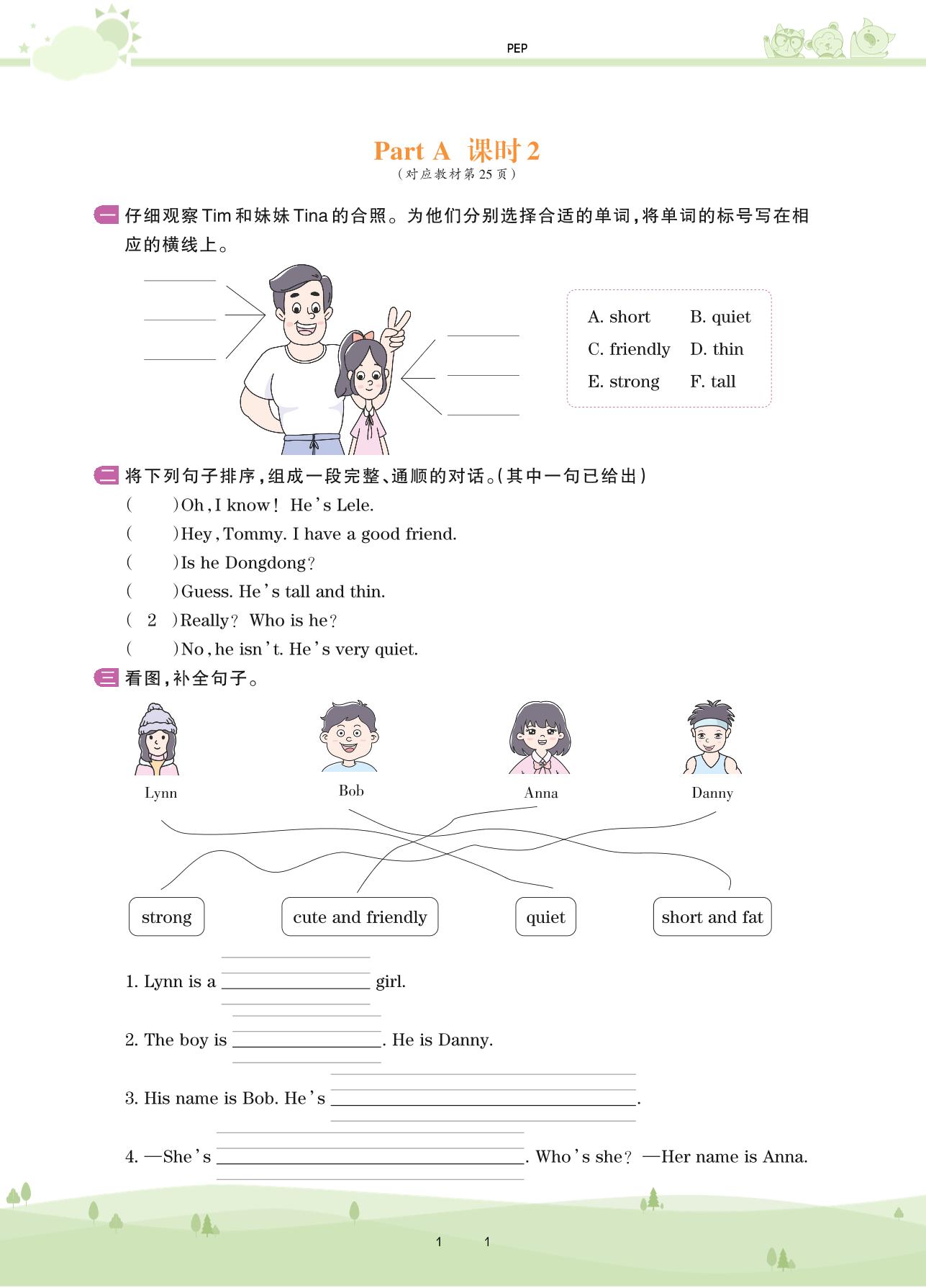 2020上册四年级英语PEP版 Unit 3—Part A 课时2