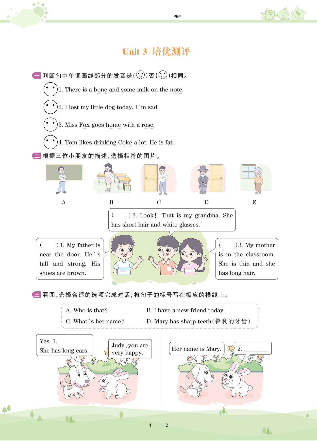 2020上册四年级英语PEP版 Unit 3 培优测评
