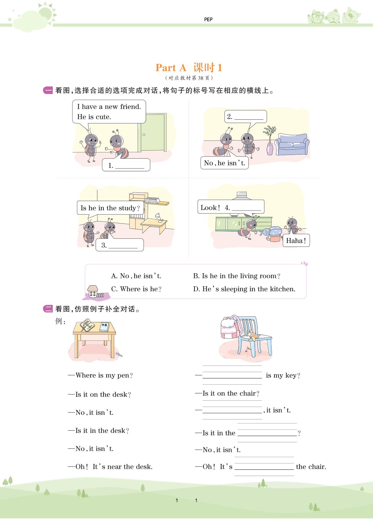 2020上册四年级英语PEP版 Unit 4—Part A 课时1