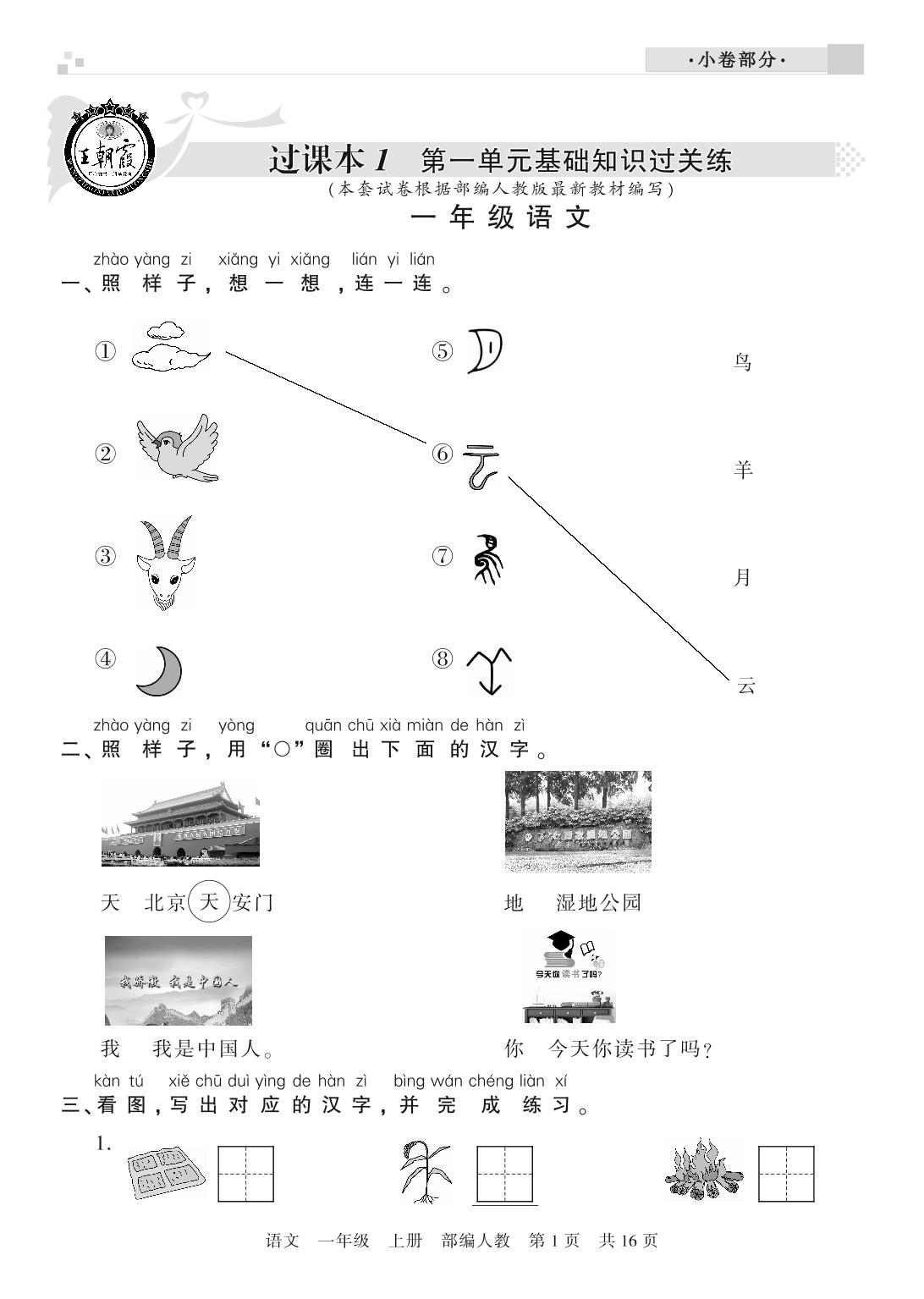 王朝霞期末过课本——基础知识过关练一年级上册语文(人教版)_R210731181010【0】