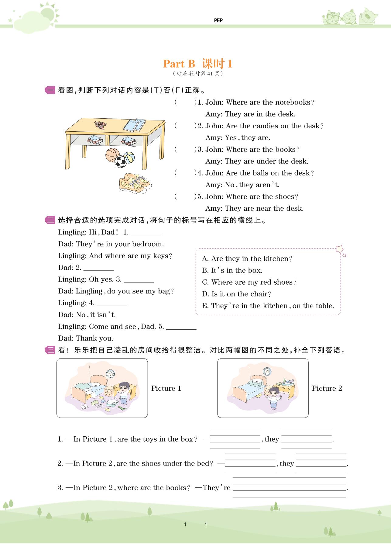 2020上册四年级英语PEP版 Unit 4—Part B 课时1