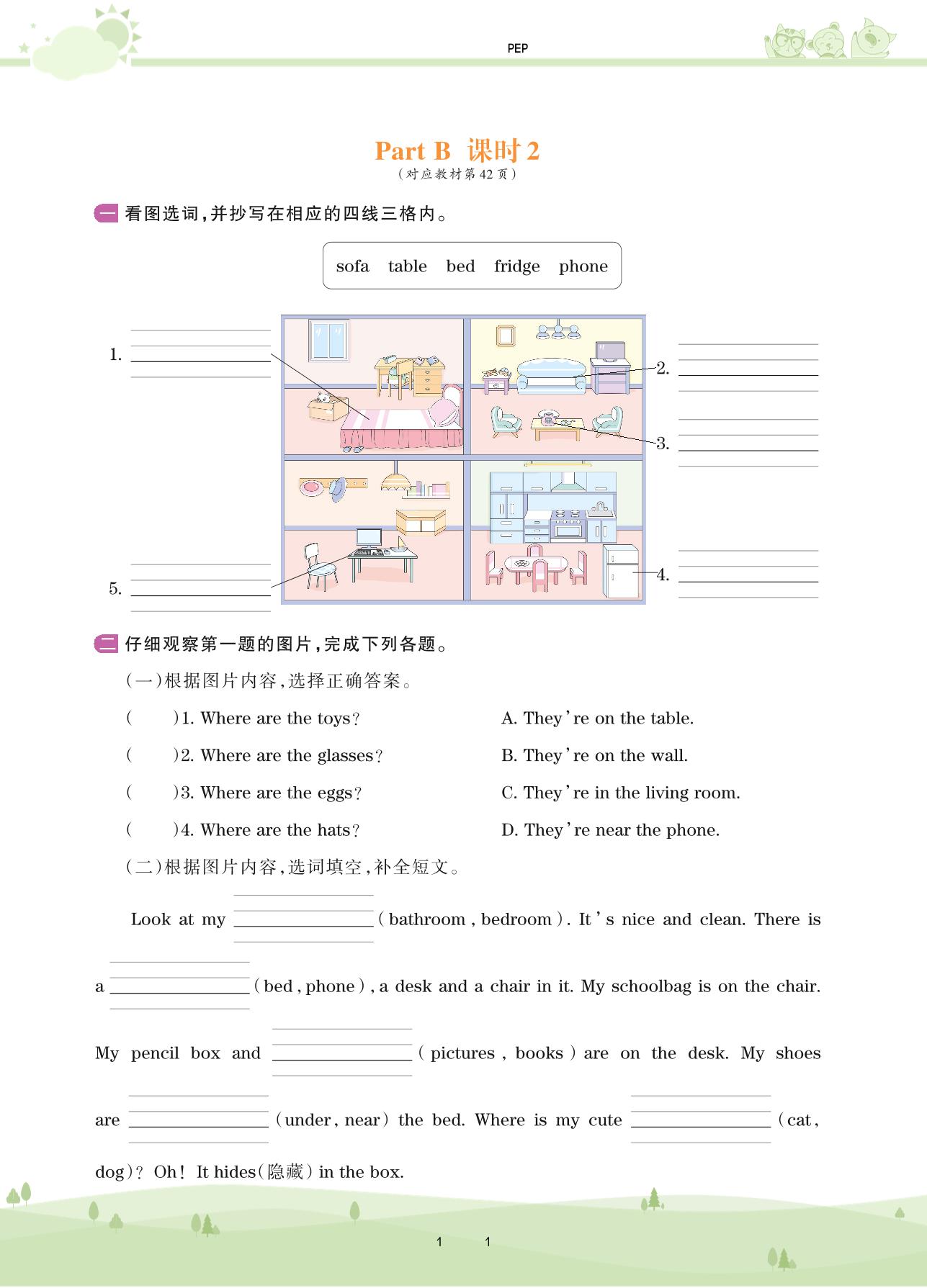 2020上册四年级英语PEP版 Unit 4—Part B 课时2