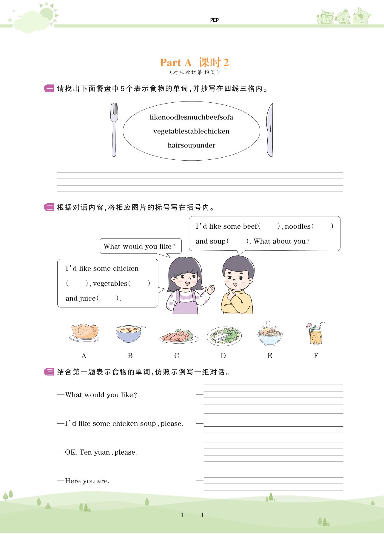 2020上册四年级英语PEP版 Unit 5—Part A 课时2