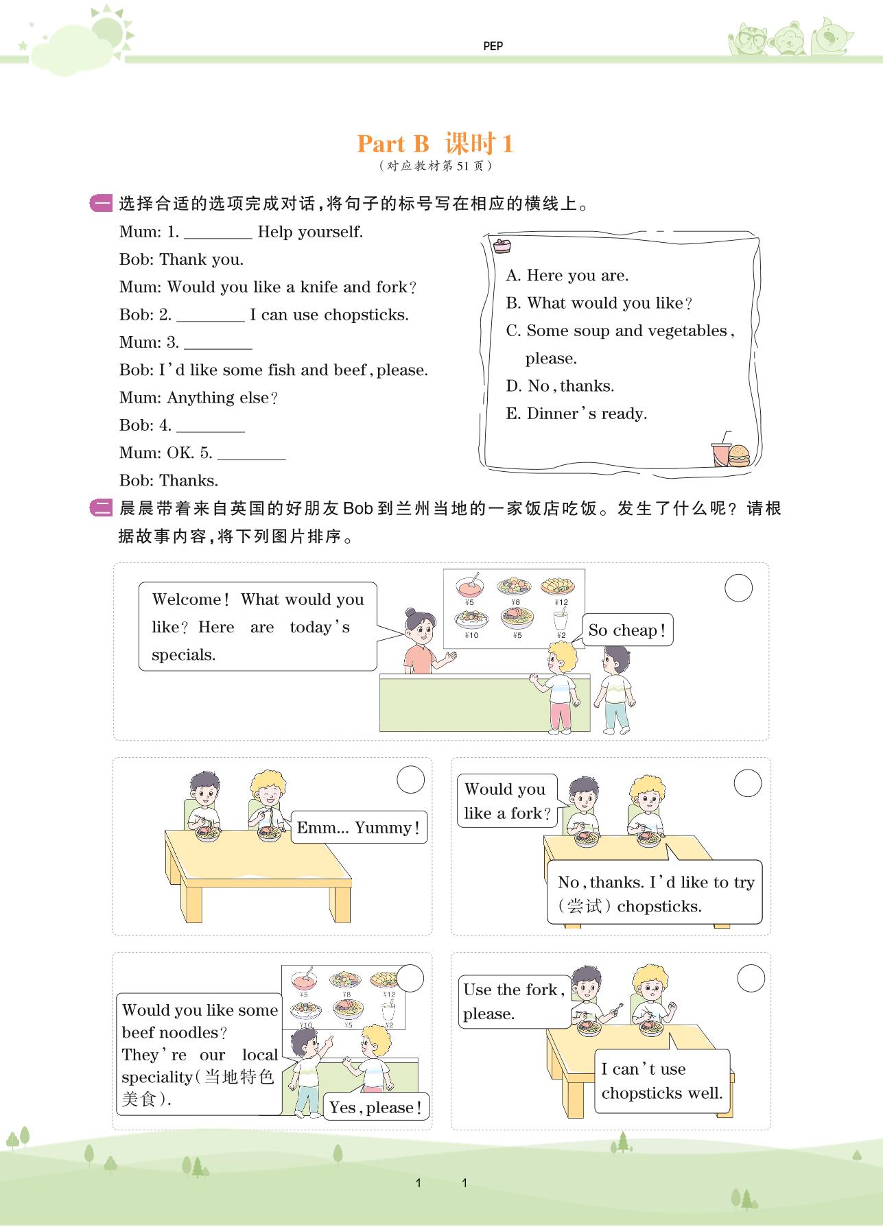 2020上册四年级英语PEP版 Unit 5—Part B 课时1