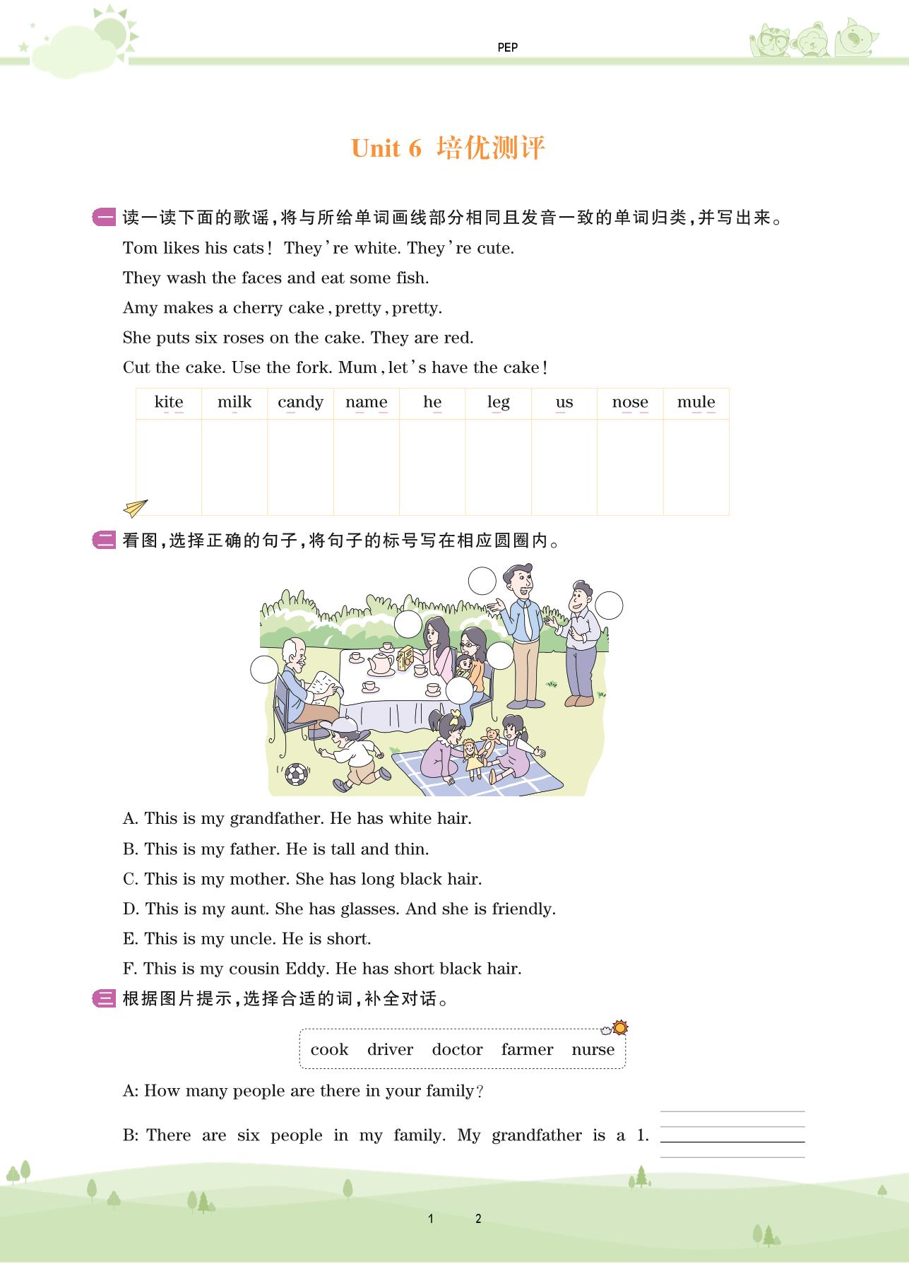 2020上册四年级英语PEP版 Unit 6 培优测评