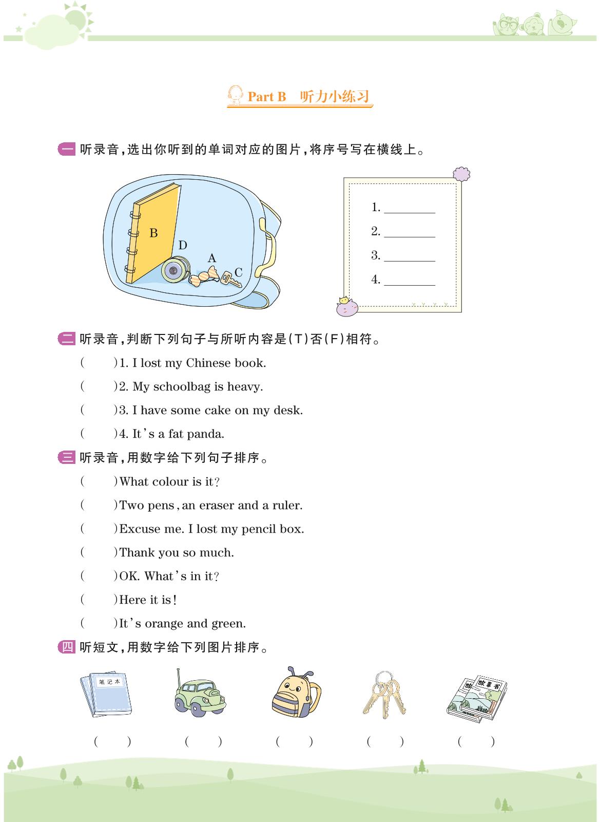 2020上册四年级英语PEP版 Unit 2——Part B 听力小练习