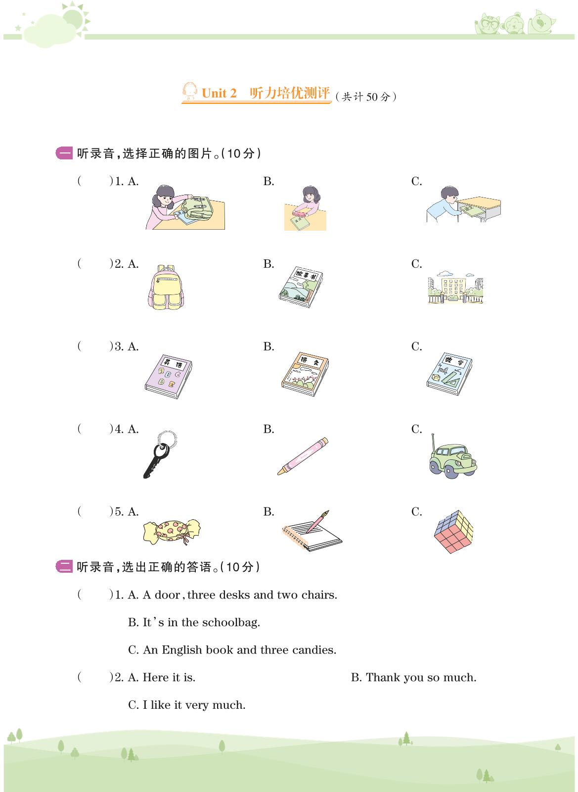 2020上册四年级英语PEP版 Unit 2 听力培优测评