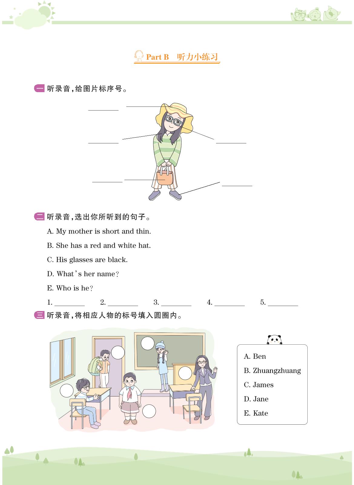 2020上册四年级英语PEP版 Unit 3——Part B 听力小练习