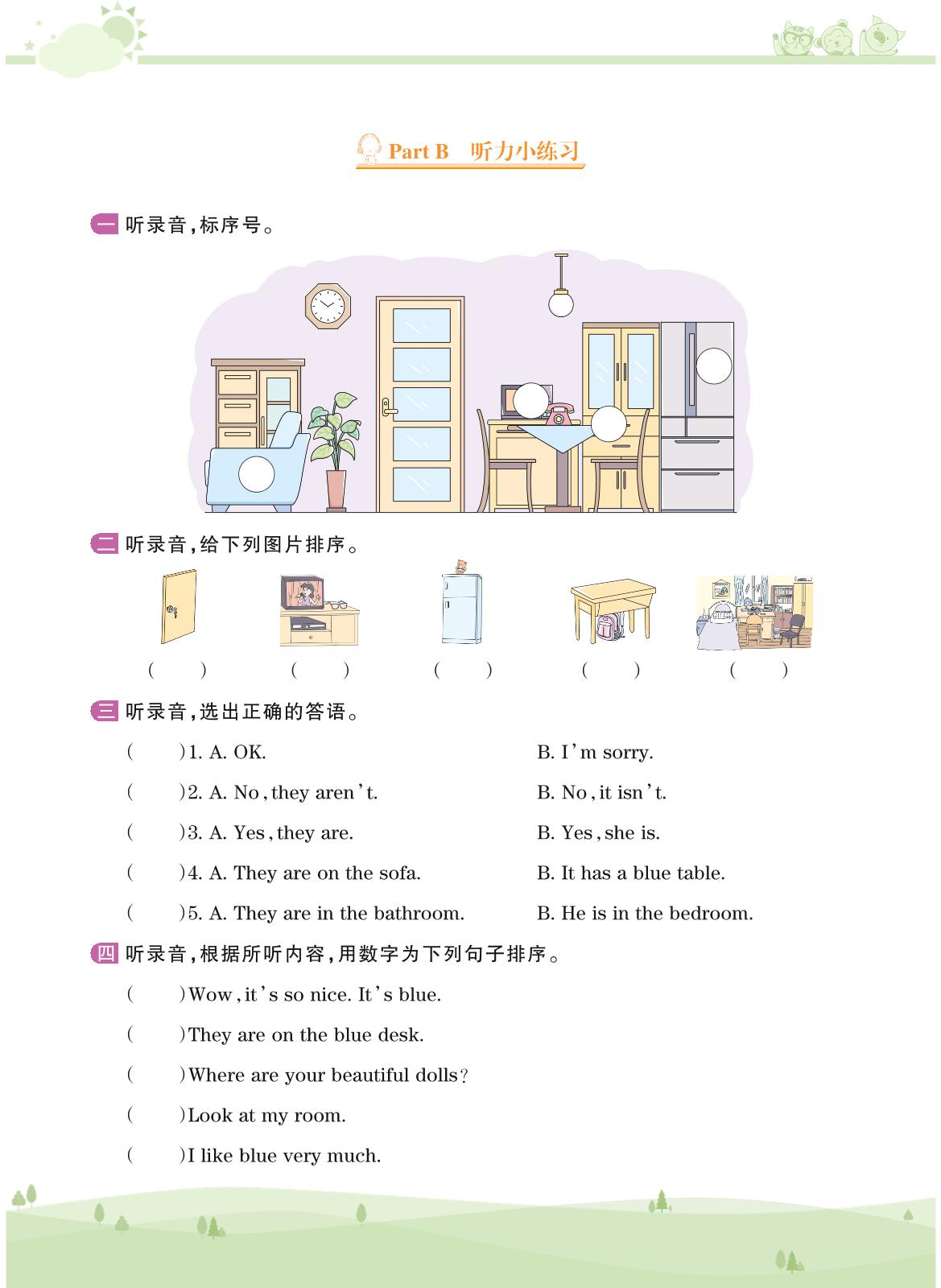 2020上册四年级英语PEP版 Unit 4——Part B 听力小练习