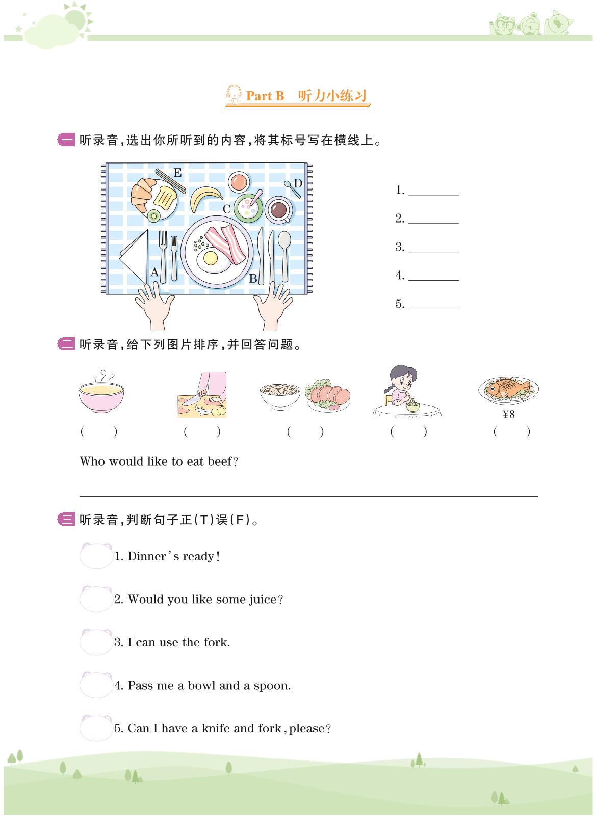 2020上册四年级英语PEP版 Unit 5——Part B 听力小练习