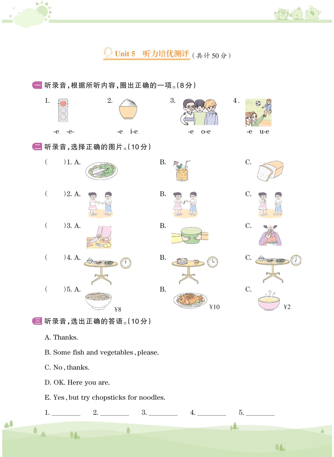 2020上册四年级英语PEP版 Unit 5 听力培优测评