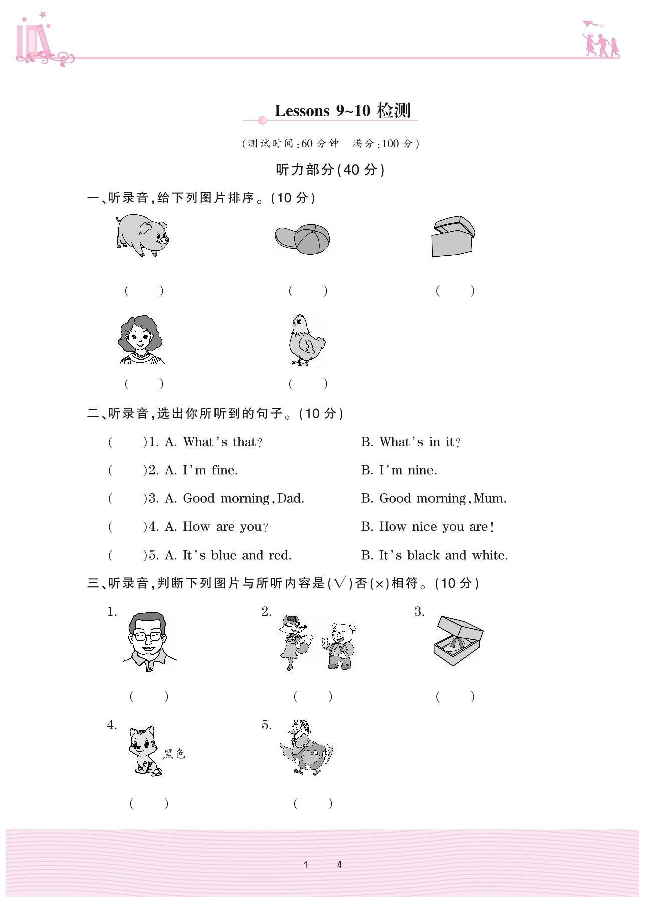 2020上册三年级英语科普版 Lessons 9~10检测