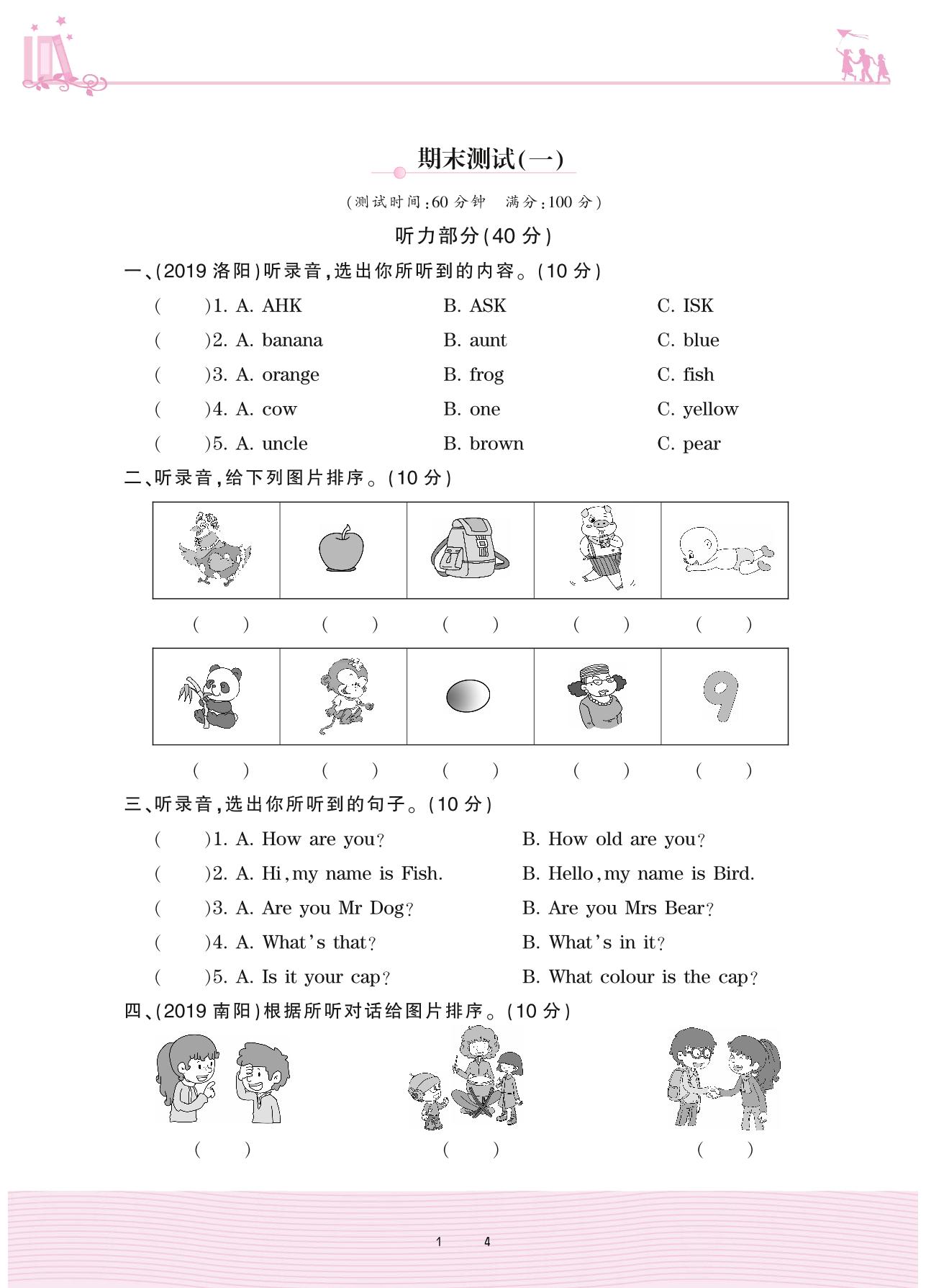 2020上册三年级英语科普版 期末测试(一)