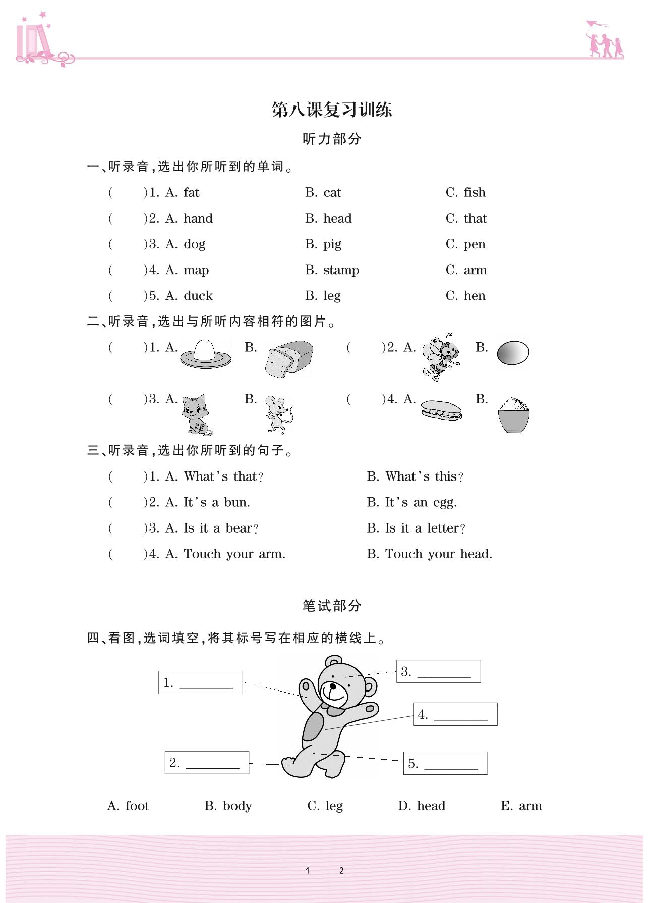 2020上册三年级英语科普版 第八课复习训练