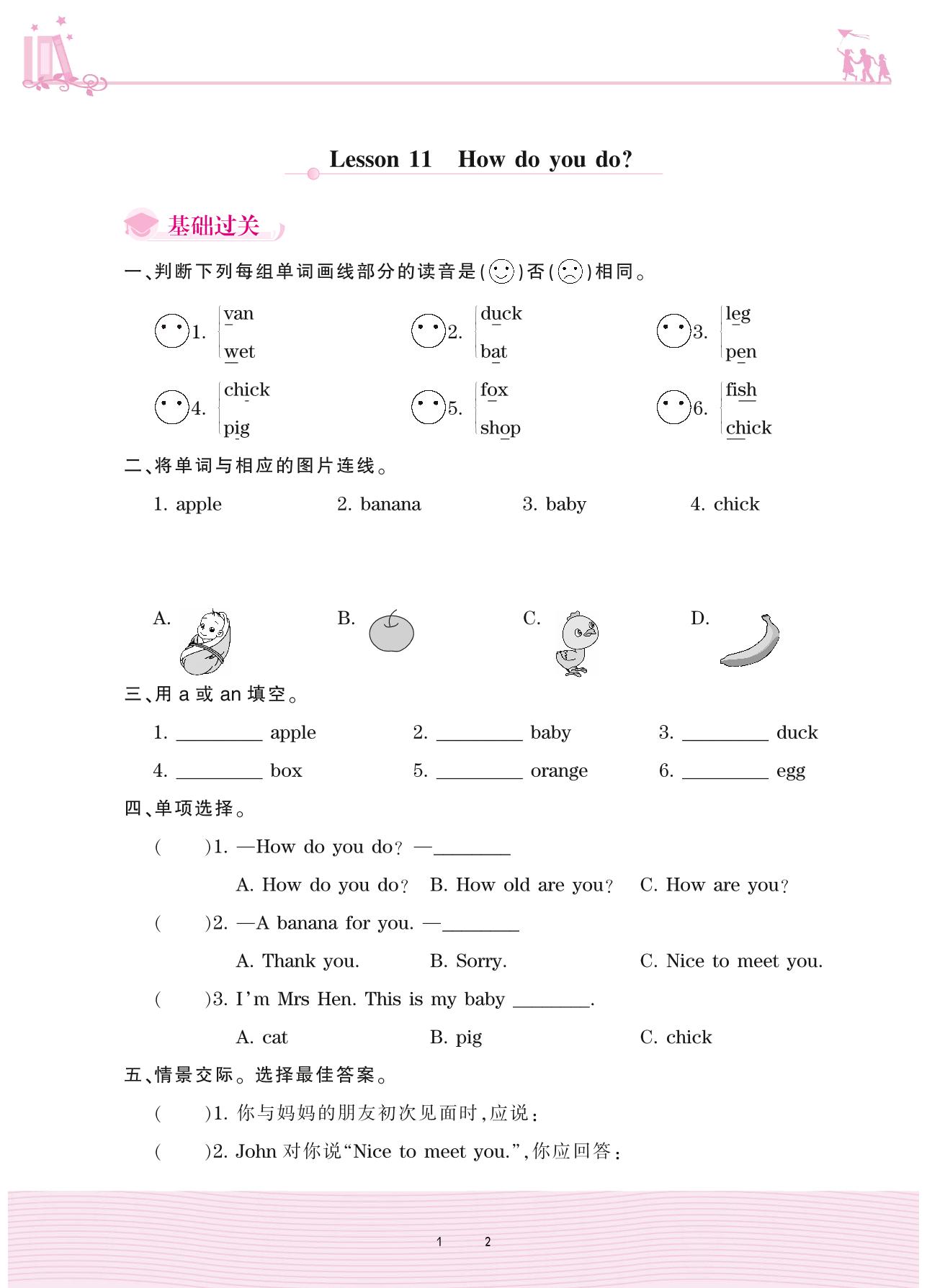 2020上册三年级英语科普版 Lesson 11 How do you do?