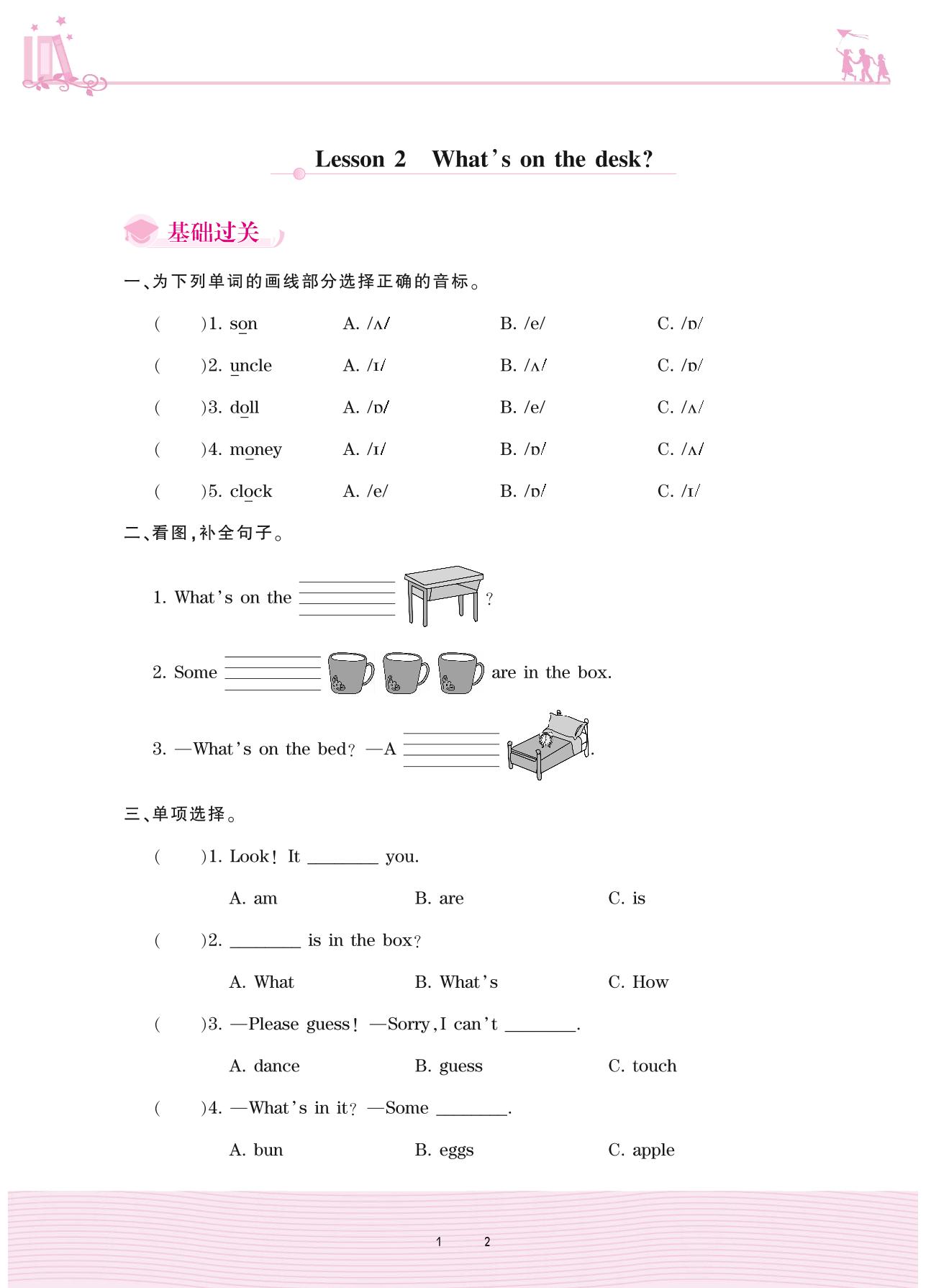 2020上册四年级英语科普版 Lesson 2 What’s on the desk?