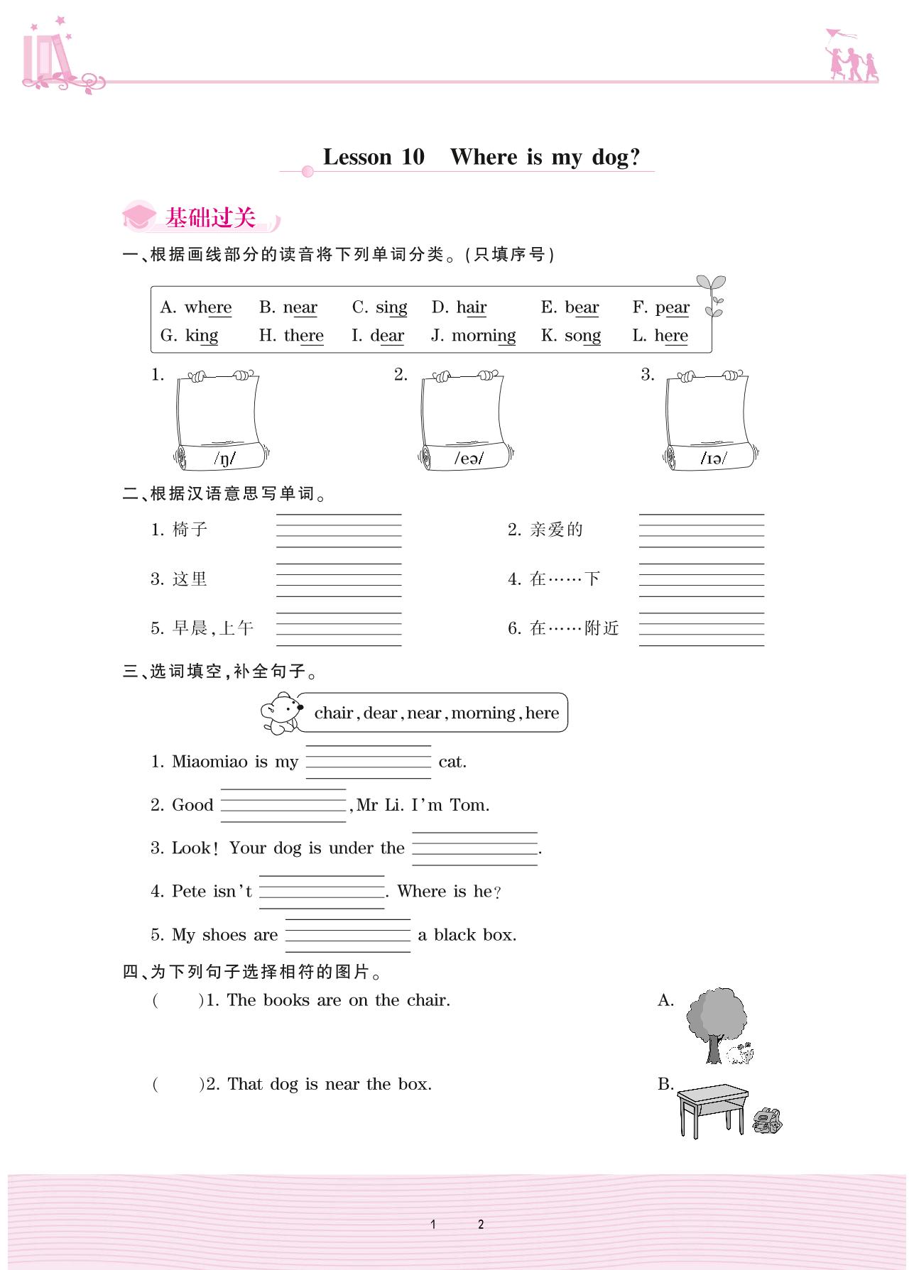 2020上册四年级英语科普版 Lesson 10 Where is my dog?