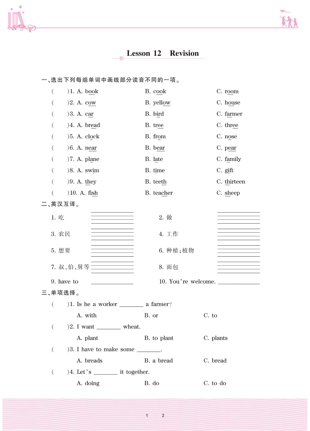 2020上册四年级英语科普版 Lesson 12 Revision
