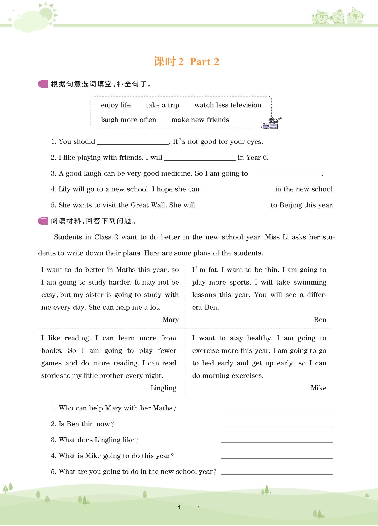 2020上册六年级英语剑桥版 Starter unit—课时2 Part 2