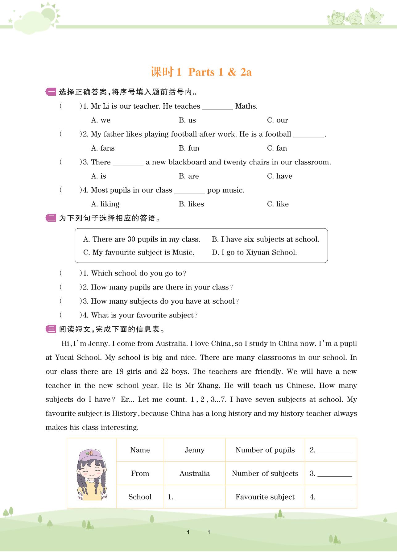 2020上册六年级英语剑桥版 Unit 1—课时1 Parts 1 & 2a