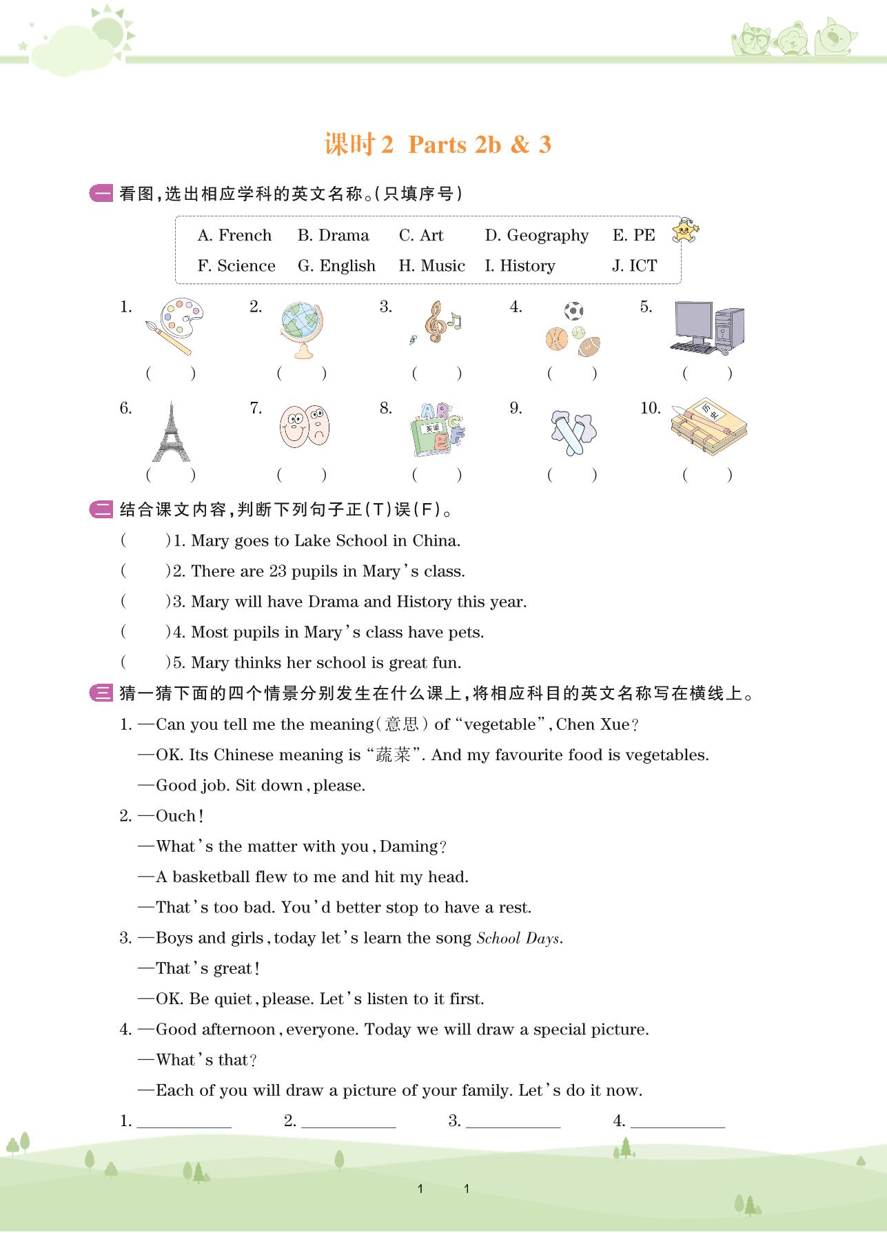 2020上册六年级英语剑桥版 Unit 1—课时2 Parts 2b & 3