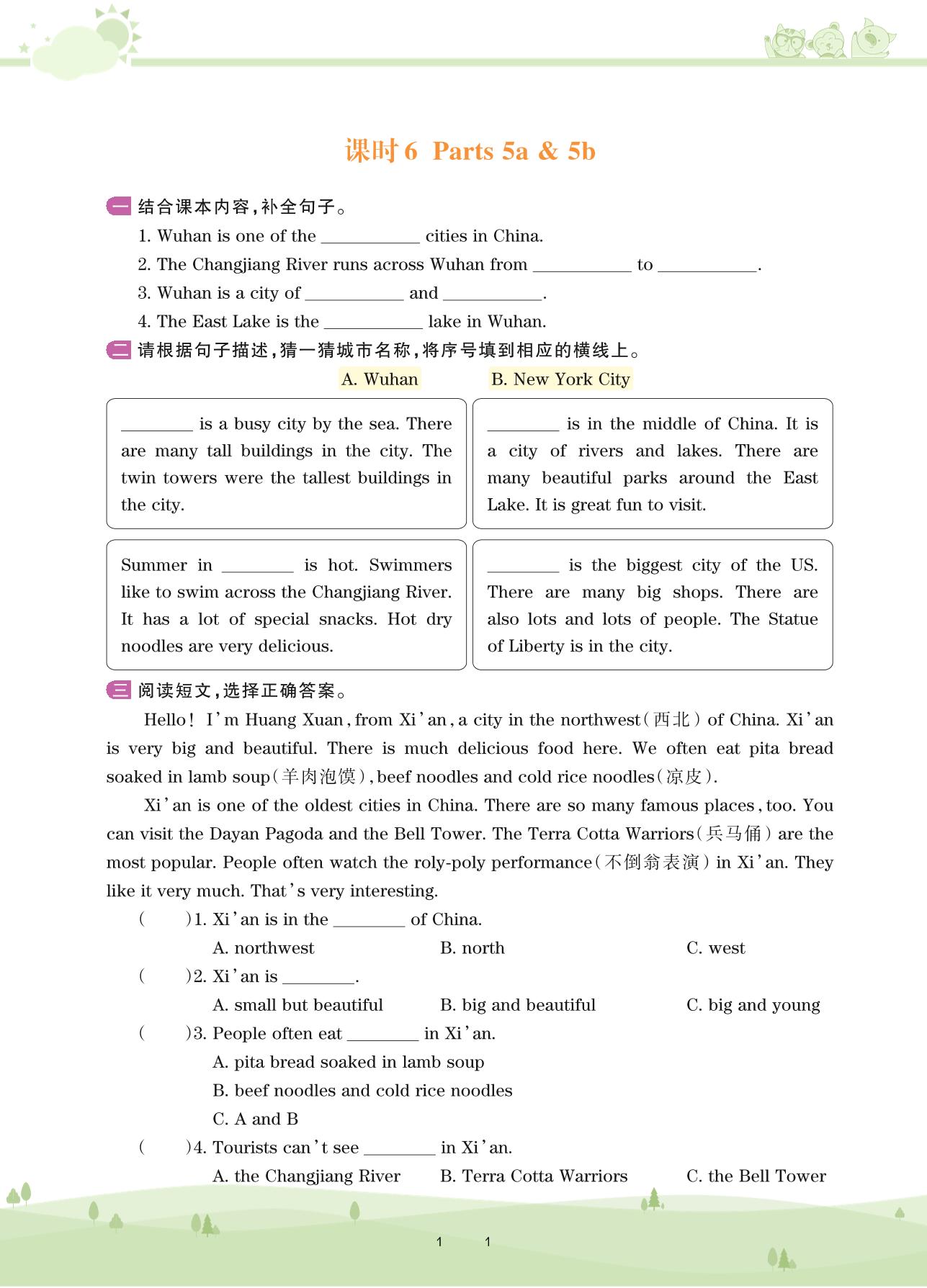 2020上册六年级英语剑桥版 Unit 2—课时6 Parts 5a & 5b