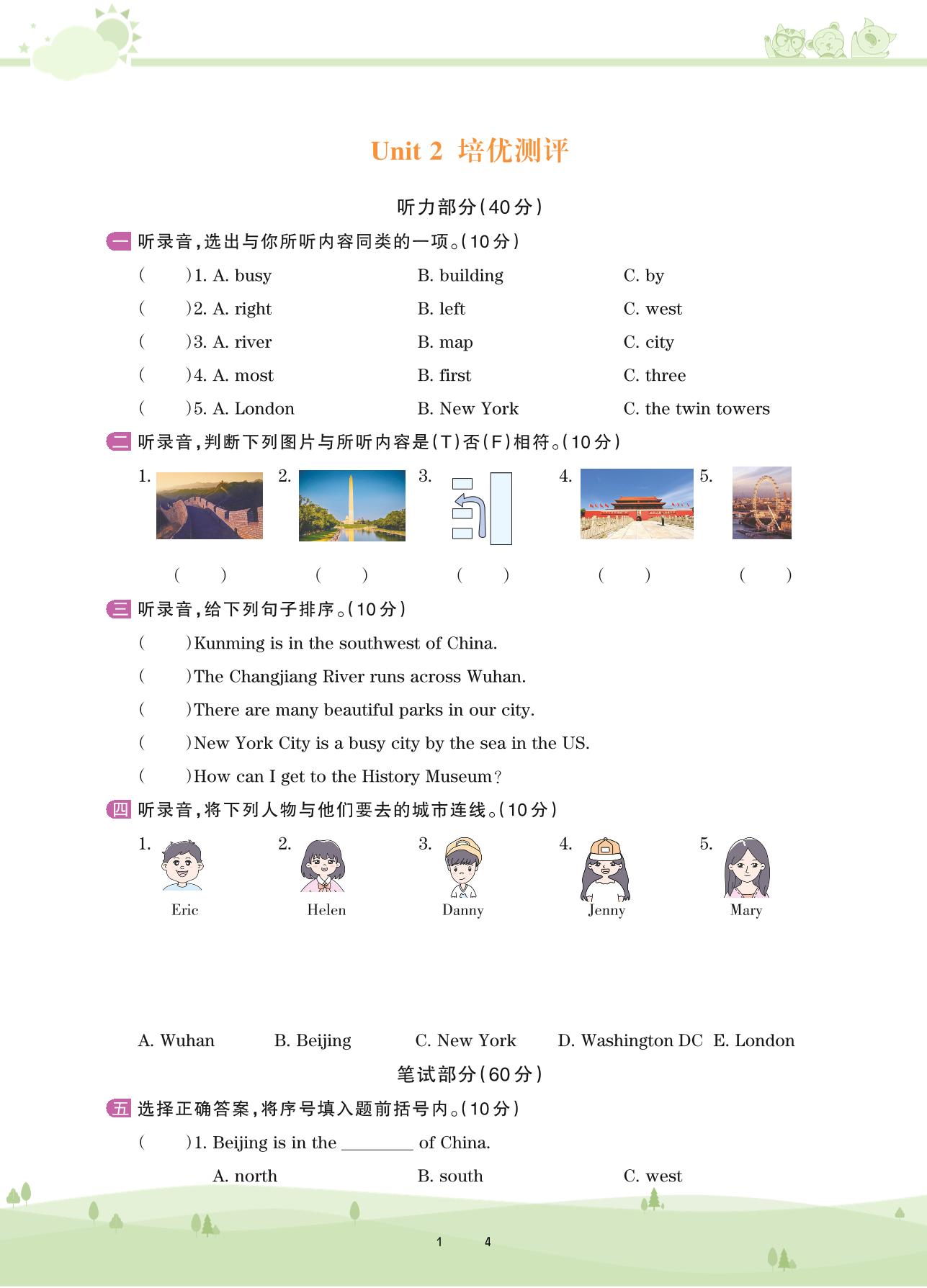 2020上册六年级英语剑桥版 Unit 2 培优测评