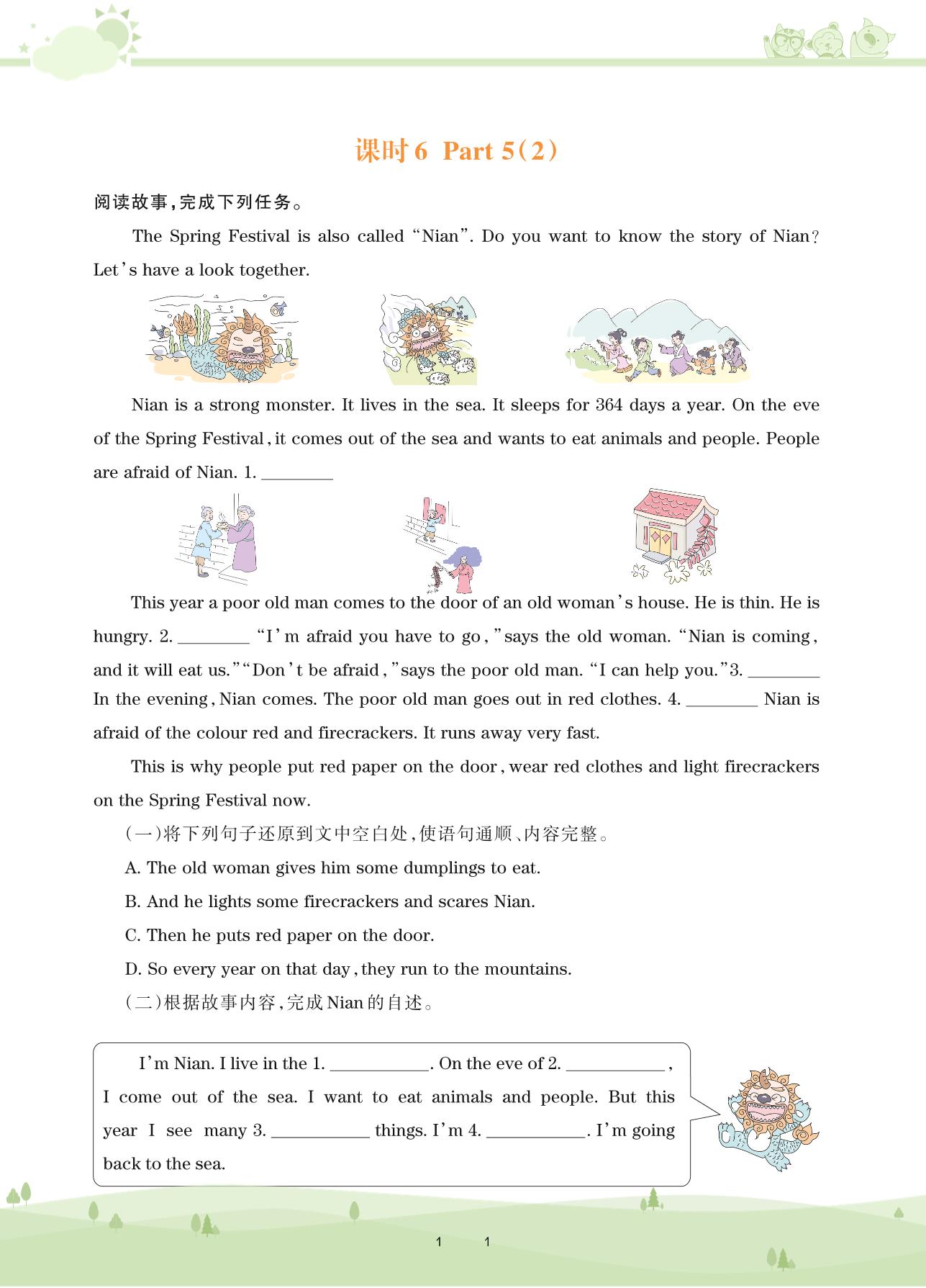 2020上册六年级英语剑桥版 Unit 3—课时6 Part 5(2)