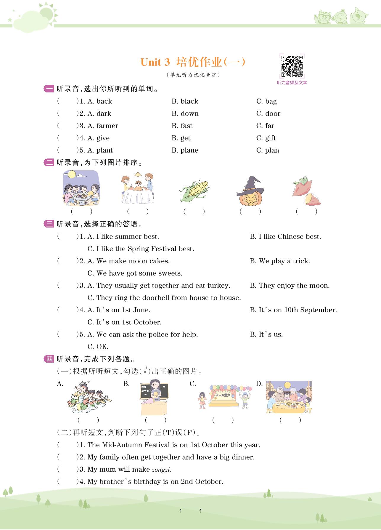 2020上册六年级英语剑桥版 Unit 3 培优作业(一)